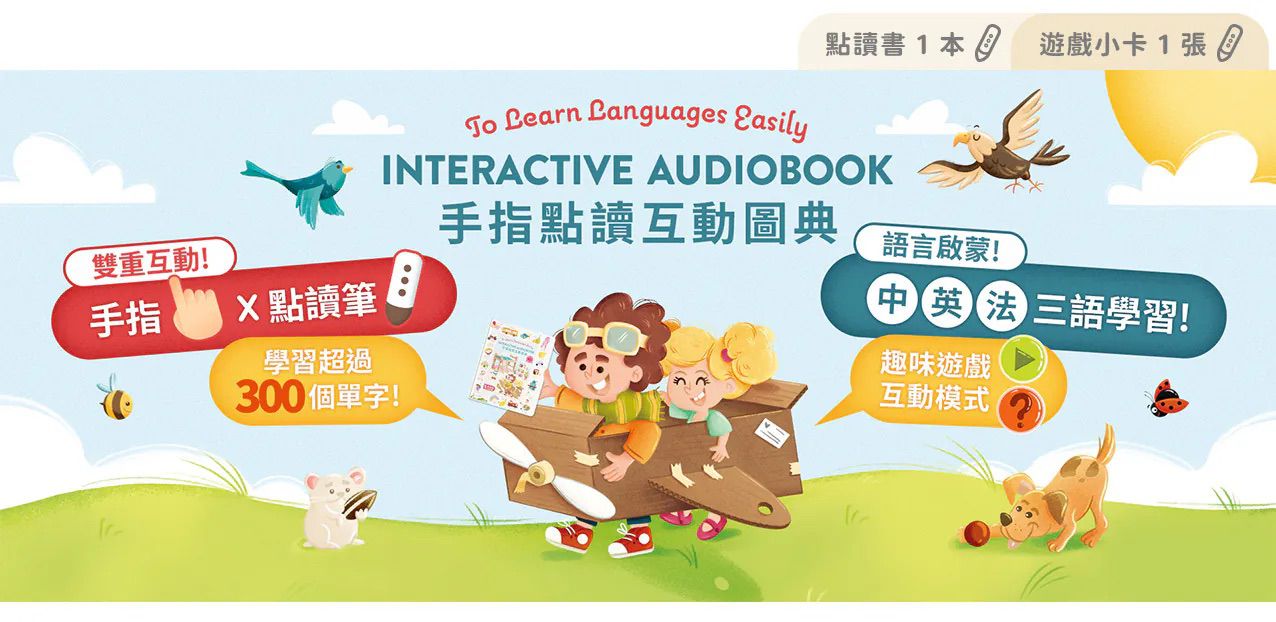 業界首見👑這是KIDsREAD首次推出有手指互動的點讀書欸❗❗藉由手指+點讀筆讓孩子輕鬆認識300+個單字,而且一個單字還能聽到『中、英、法』三種語言(太優秀了👏)!