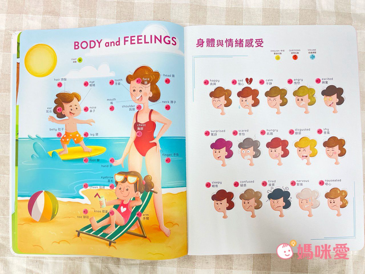 再來是『身體與情緒感受BODY and FEELINGS』帶領孩子認識高興、傷心、平靜、憤怒、興奮等15種心情。