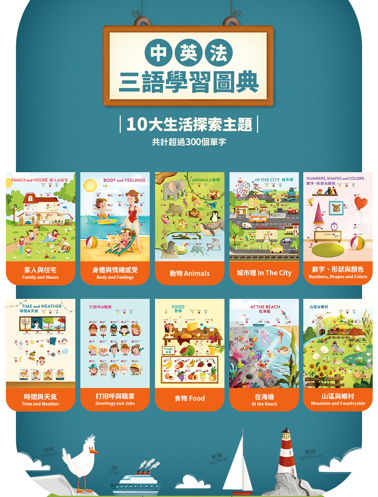 這本我覺得小學生能認識3種語言外,也非常適合學齡前的孩子,畢竟像『數字、形狀與顏色』、『時間與天氣』這樣的主題都很推薦寶貝認知學習~