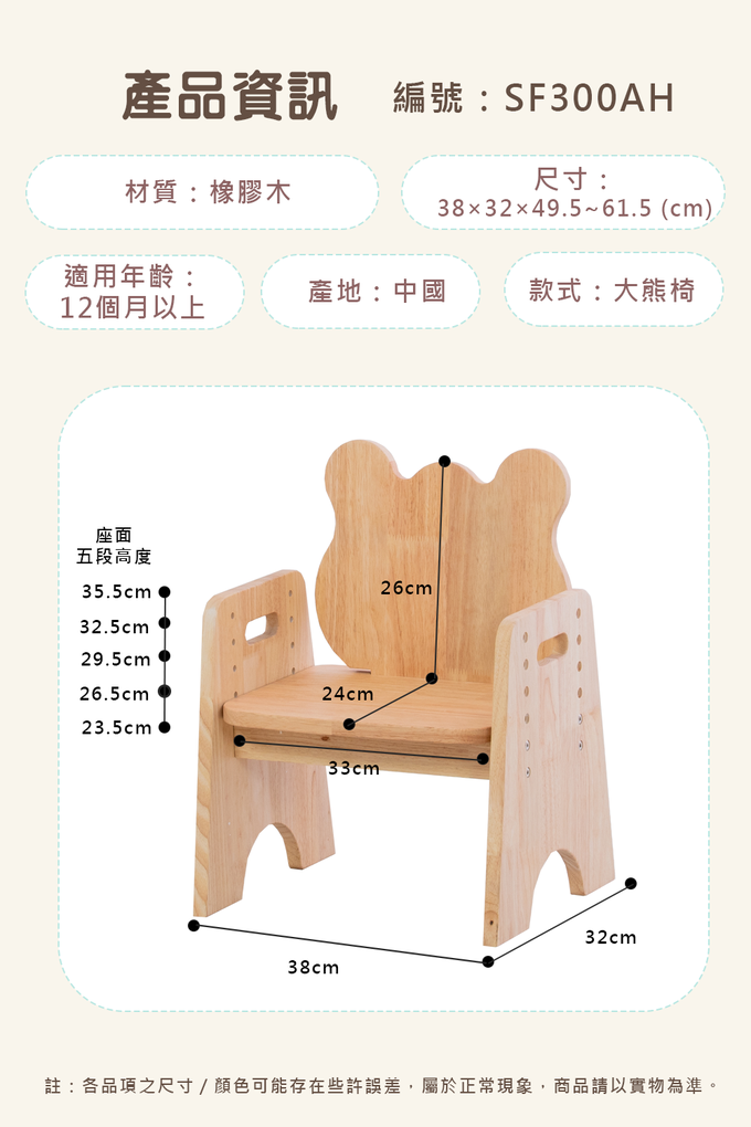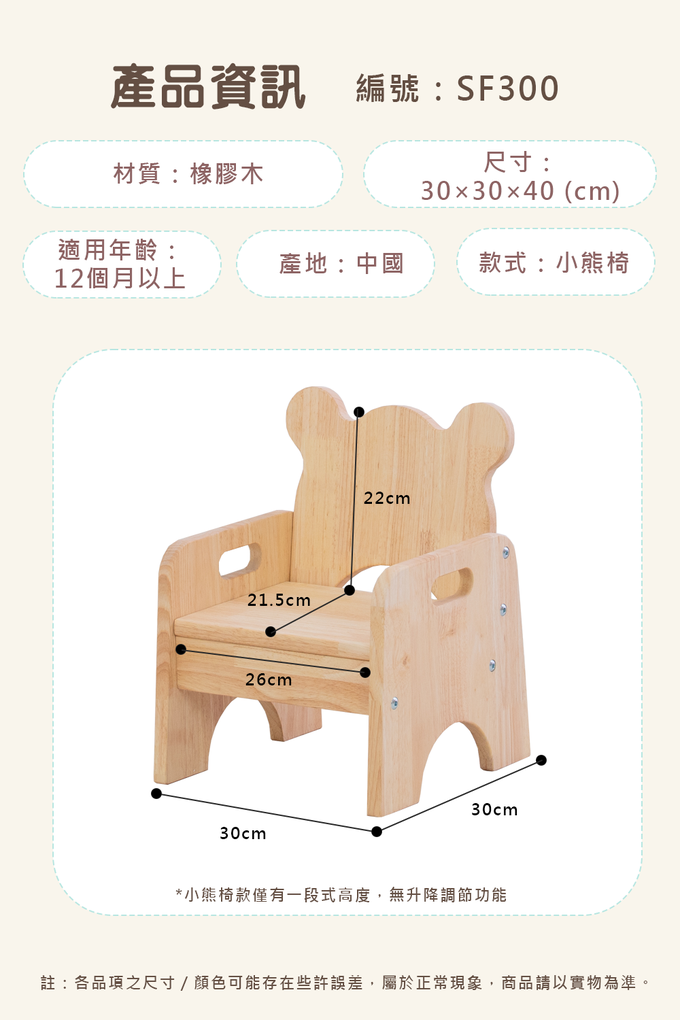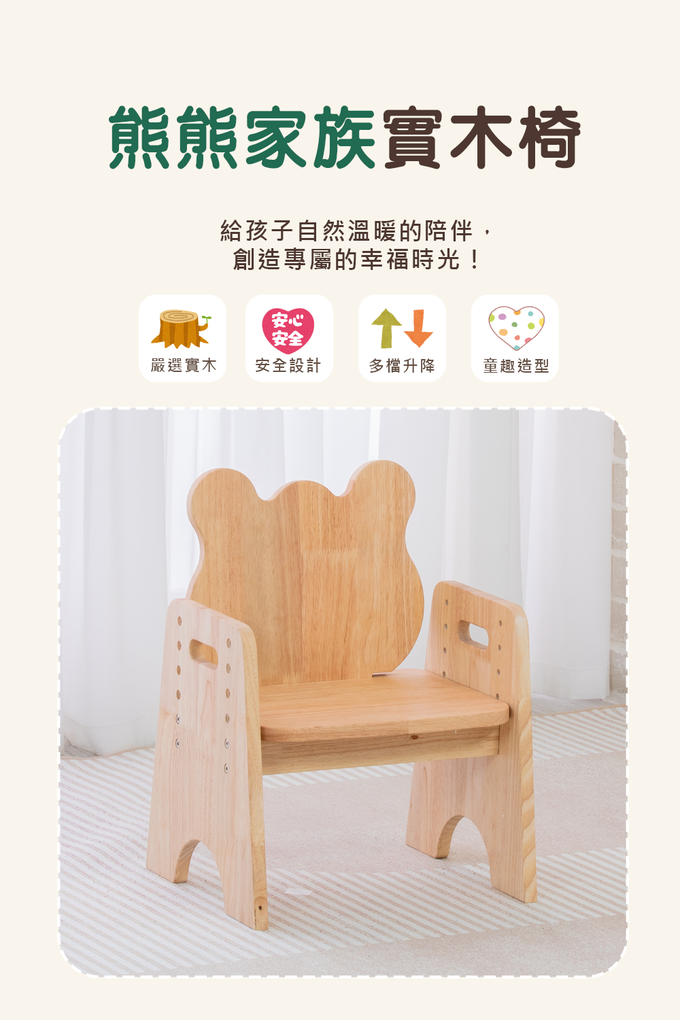 品名:※2025新款※熊熊家族實木椅【預購品3/10開始出貨】