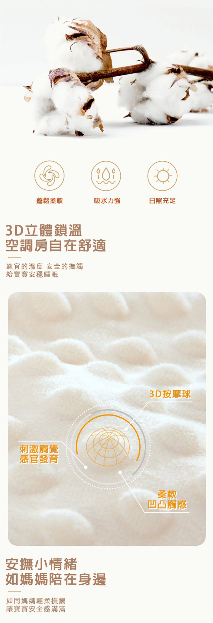 1.親膚棉柔無飛絮,安撫好睡減少不安。