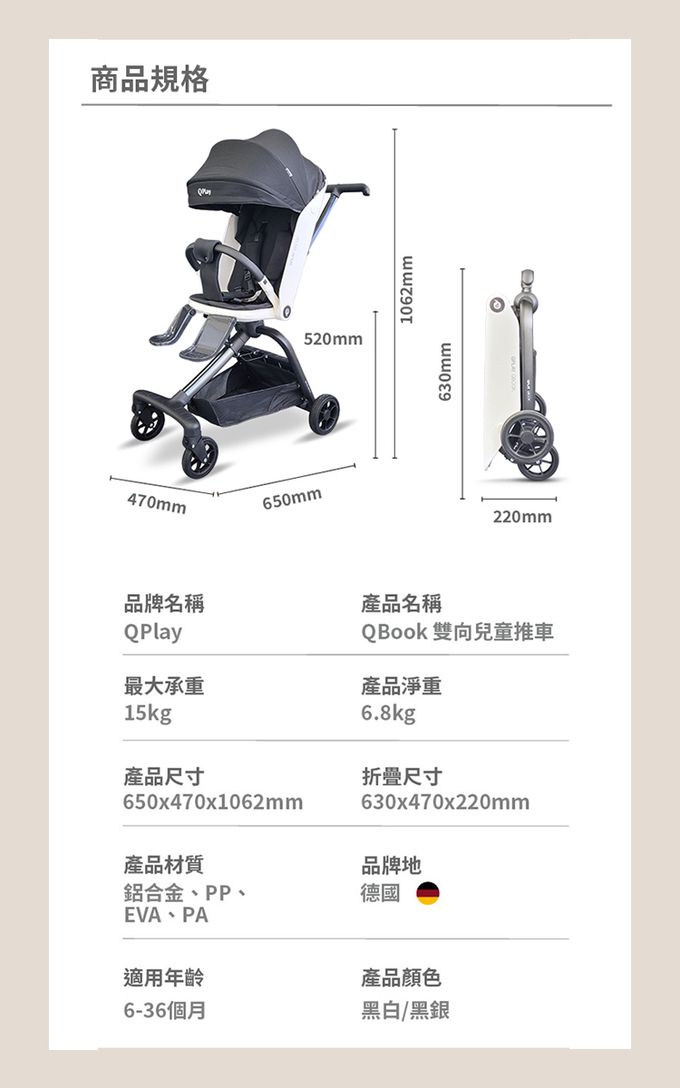 品名:QBOOK雙向兒童推車