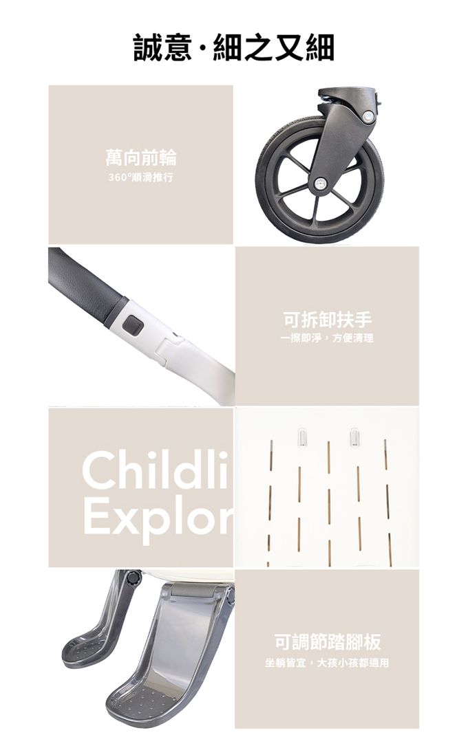 注意事項:【商品規格】 適用年齡:6-36個月 最大承重:15kg 主要材質:塑膠(PP、PA、ABS、EVA)、鋁合金、布料 展開尺寸:約 89.5x47x106cm 收折尺寸:約 63x47x22cm 商品淨重:約 7kg 產地:中國 商品檢驗標識號:(I)C2 0447878 【注意事項】 ● 乘坐時務必繫好安全帶。 ● 請依說明書指示使用。 ● 不可讓嬰幼兒站立。 ● 本產品限乘一位嬰幼兒。 ● 本產品僅設計供步行使用。 ● 禁止於樓梯間使用手推車。 ● 不得附載其他物品或附件於推車上。 ● 置物籃內請勿放置超過2公斤的物品。 ● 本產品不適用於6個月以下之嬰幼兒。 ● 不得將嬰幼兒單獨留置車上無人看護。 ● 本推車不移動時,請確實使用煞車裝置。 ● 安全帶或束縛系統必須正確扣合及使用。 ● 不可將推車放置於馬路、坡道或危險場所。 ● 使用時應遠離高溫、水池或電源之臨近範圍。 ● 使用時確保所有鎖定裝置都已經處於鎖定狀態。 ● 嬰幼兒乘坐於手推車内時,不可將整車台往上提。 ● 不可在手把上懸掛任何提袋或放置任何物品,以免影響推車穩定性。 ● 本產品不可放置於機車踏墊使用,亦不可以連結器連接其他手推嬰幼兒車使用。 ● 輪胎經使用後造成磨損及壓痕為正常現象,請定期評估是否需要更換維修。 ● 當調整手推車上之任何可活動配件時,必須確定嬰幼兒的肢體與車台保持安全距離。 ● 超載或不正確的折疊及使用非經核准的零附件都可能造成車台損壞、故障或不安全,請務必詳閱產品使用說明書。