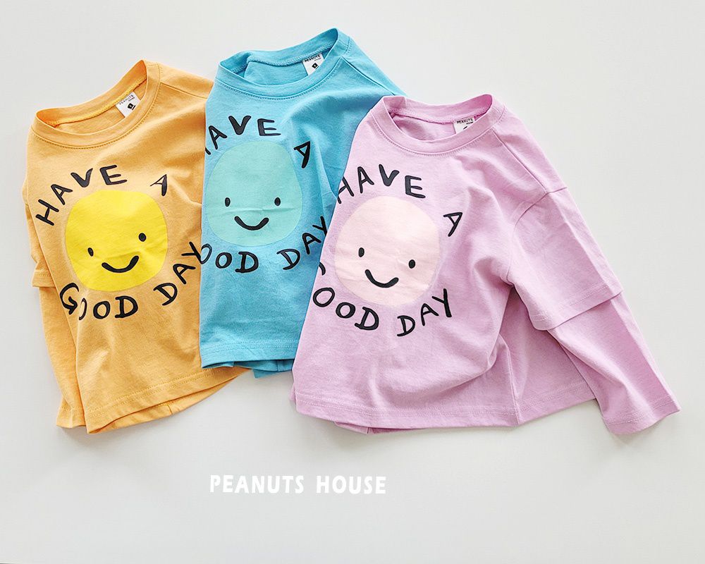 韓國 Peanuts House - 萌萌圓笑臉純棉拼接袖上衣