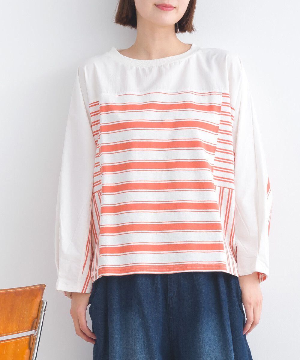 日本 Lupilien - 毛茸感華麗大花朵針織上衣-白x橘粉