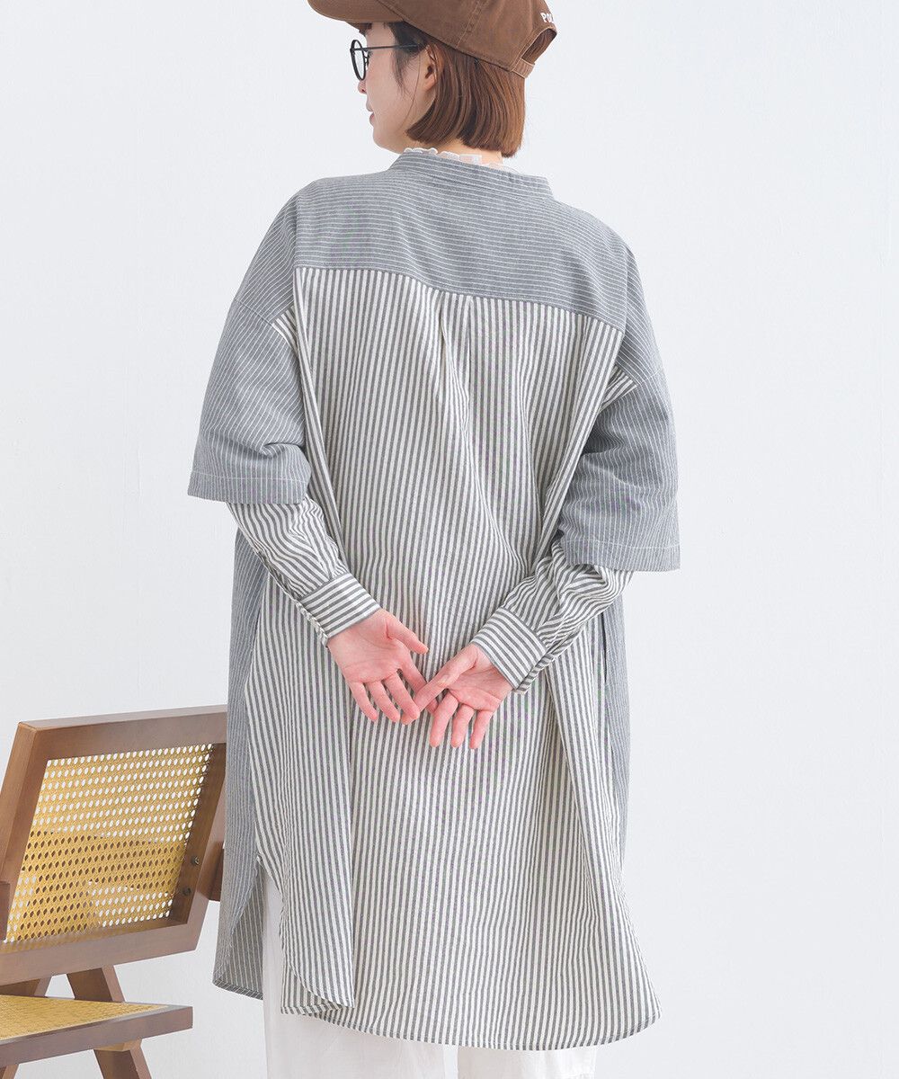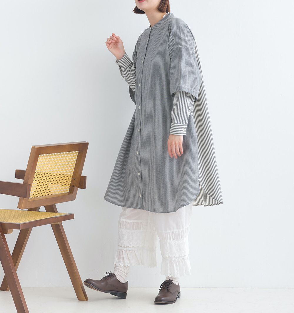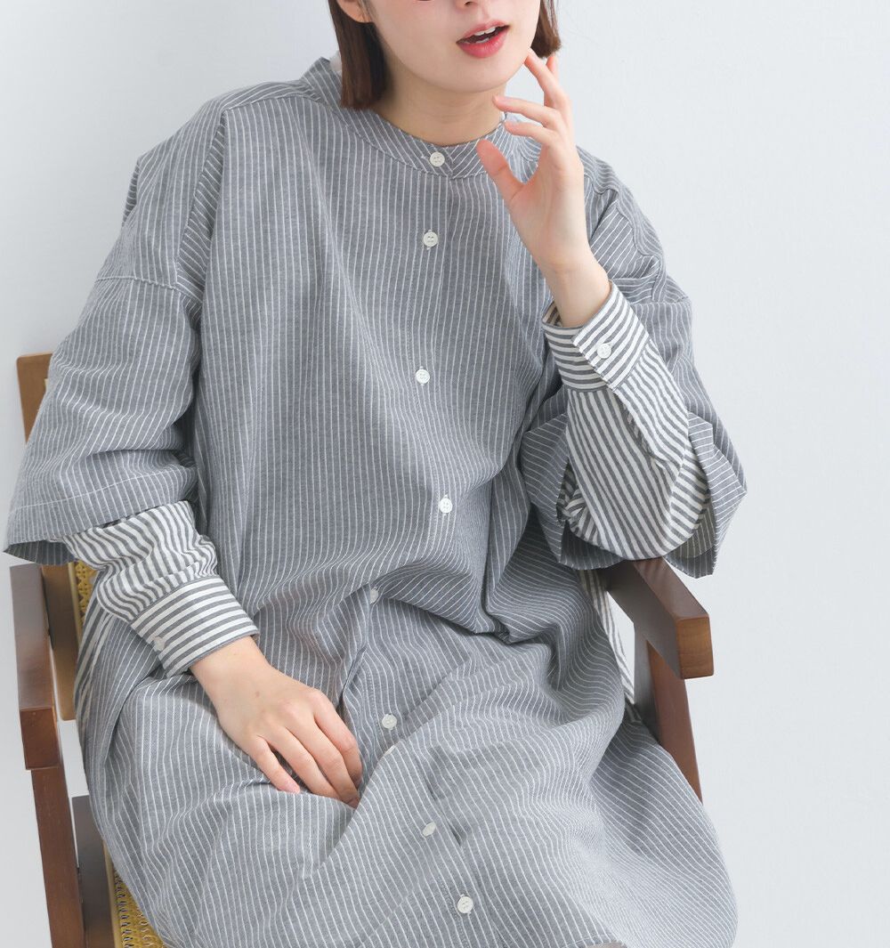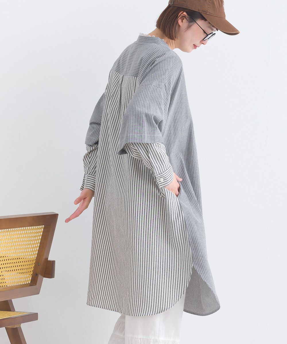 日本 Lupilien - 假二件文藝條紋襯衫式洋裝-灰