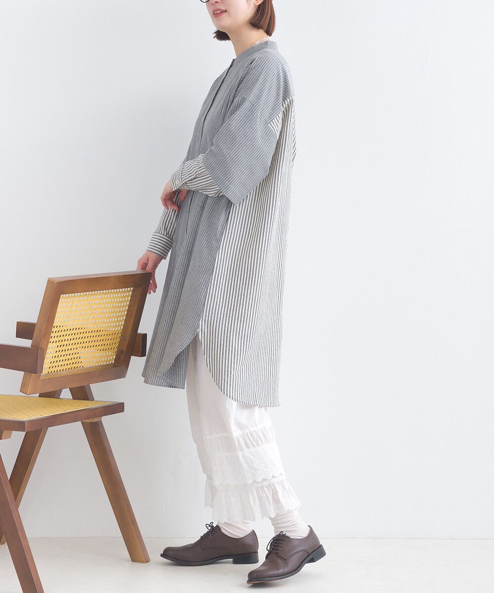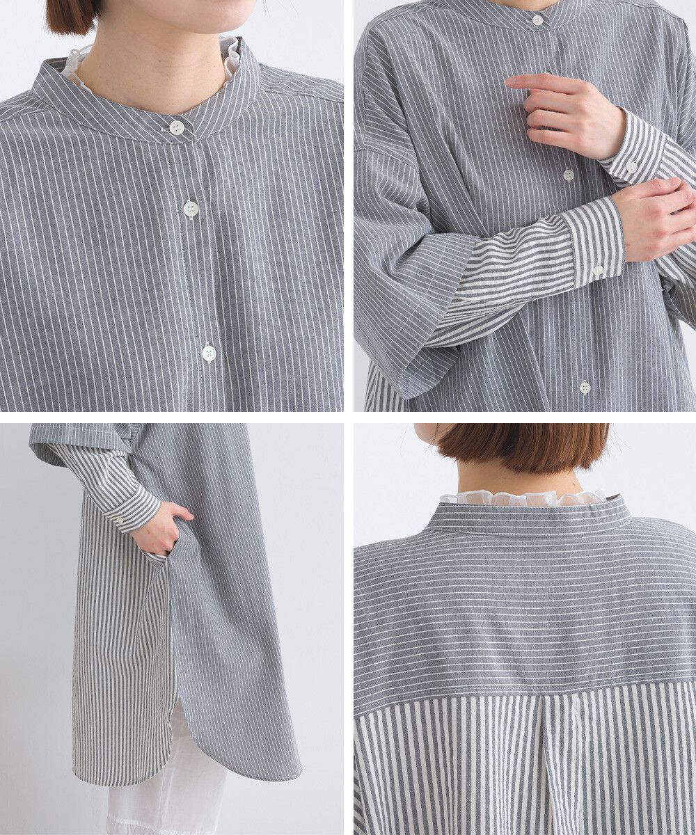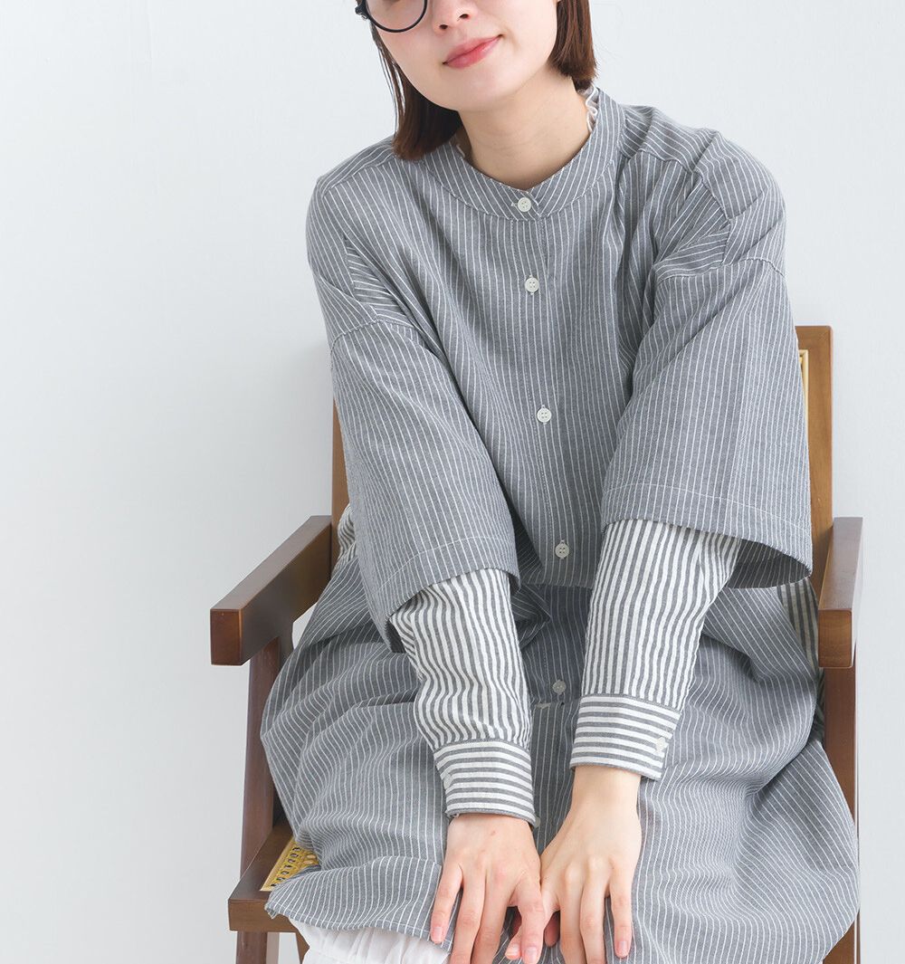 日本 Lupilien - 假二件文藝條紋襯衫式洋裝-灰
