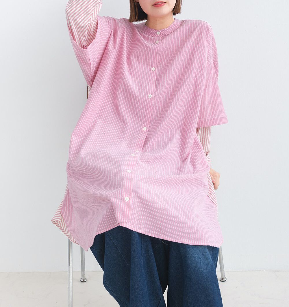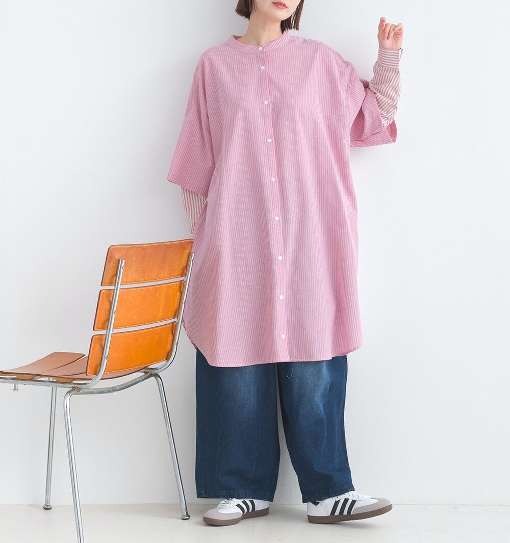 • 長板襯衫版型,當作洋裝上衣都OK