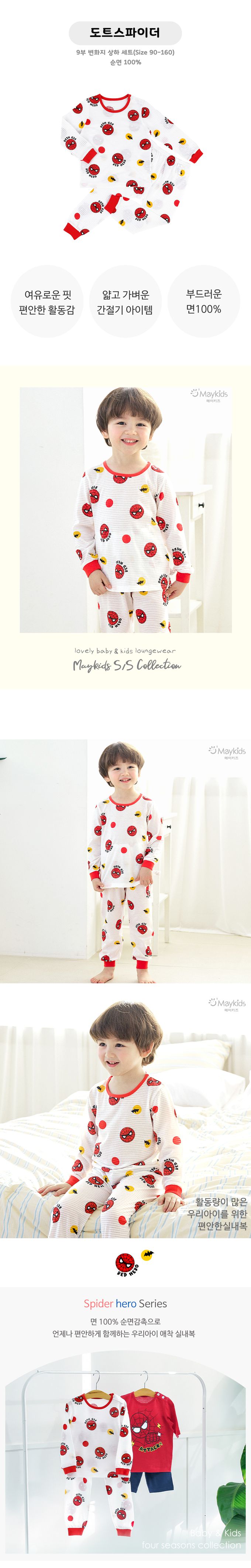 韓國 Maykids - 透氣條紋提花棉長袖家居服-卡通人物蜘蛛人
