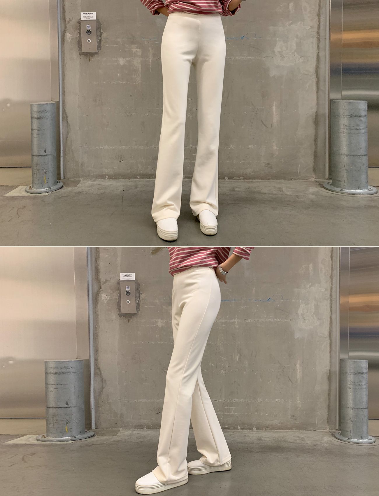 韓國女裝連線 - 舒適鬆緊腰超彈力美腿褲-Long(163-172cm適穿)-象牙白