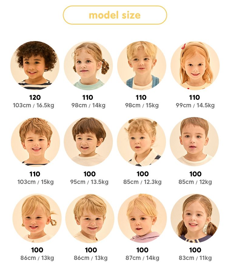 1. 尺寸表單位皆為公分(cm),實際尺寸會因布料彈性、水洗、測量起迄點等因素略有誤差。建議參考孩子平時穿著衣物尺寸進行選購。