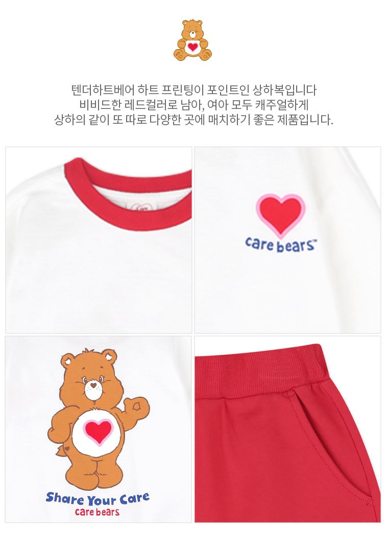 韓國 Care Bears - 聯名款愛心熊長袖上衣X短褲套裝-白X紅