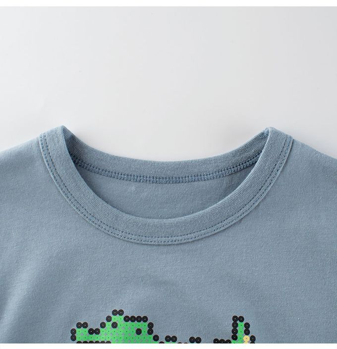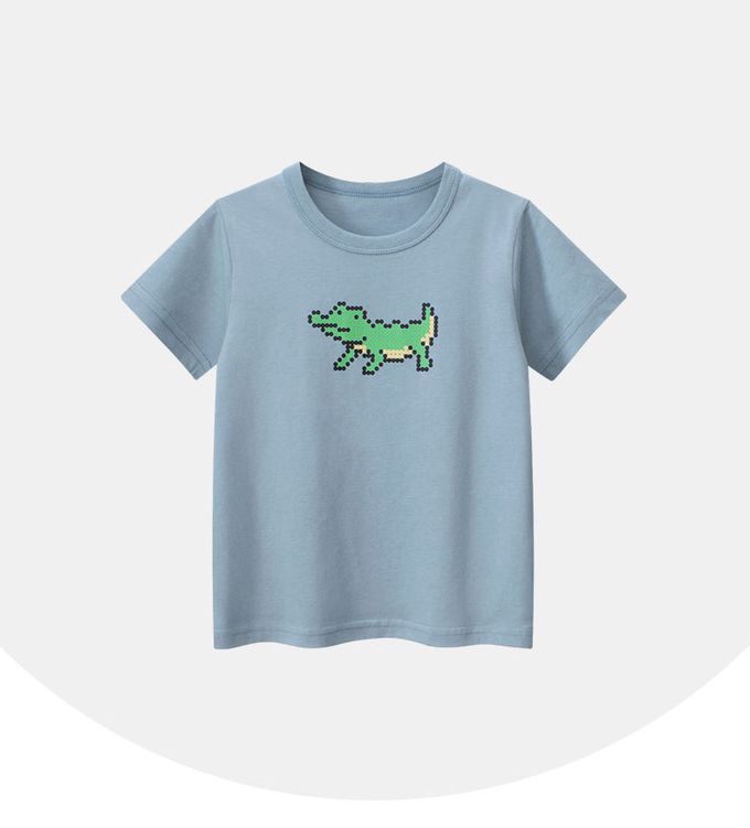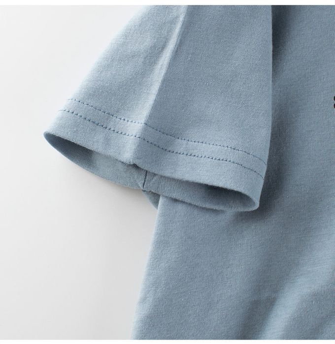 27KIDS - 純棉短袖上衣-藍色笑笑獅-灰綠色