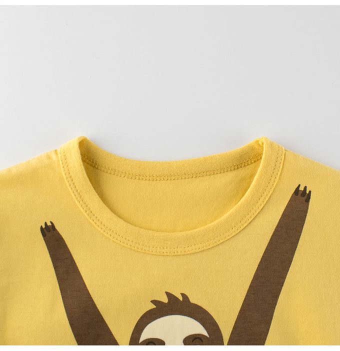 27KIDS - 純棉短袖上衣-長鼻子大象-卡其色