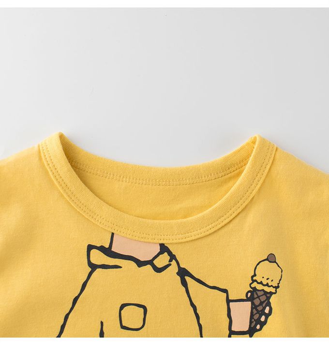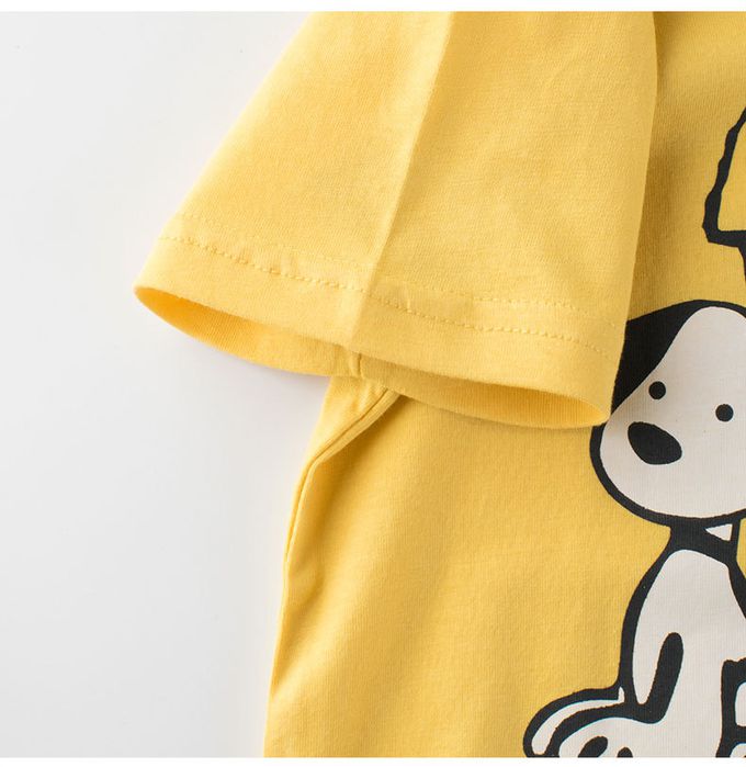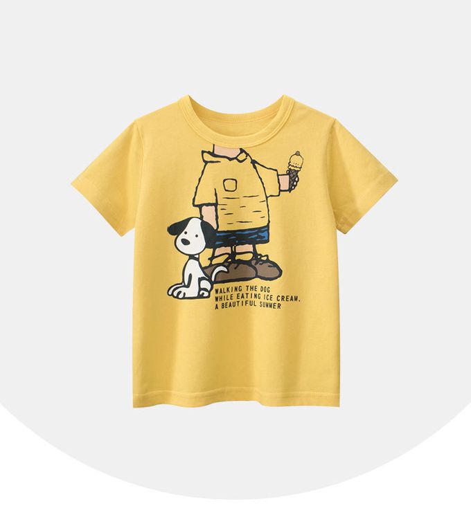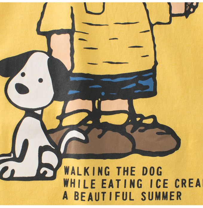 純棉短袖上衣-夏日遛狗-黃色