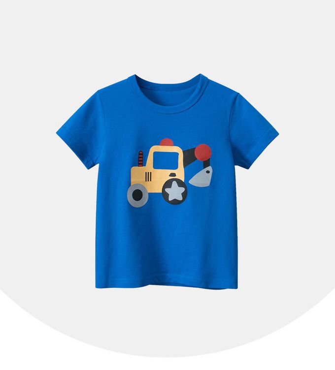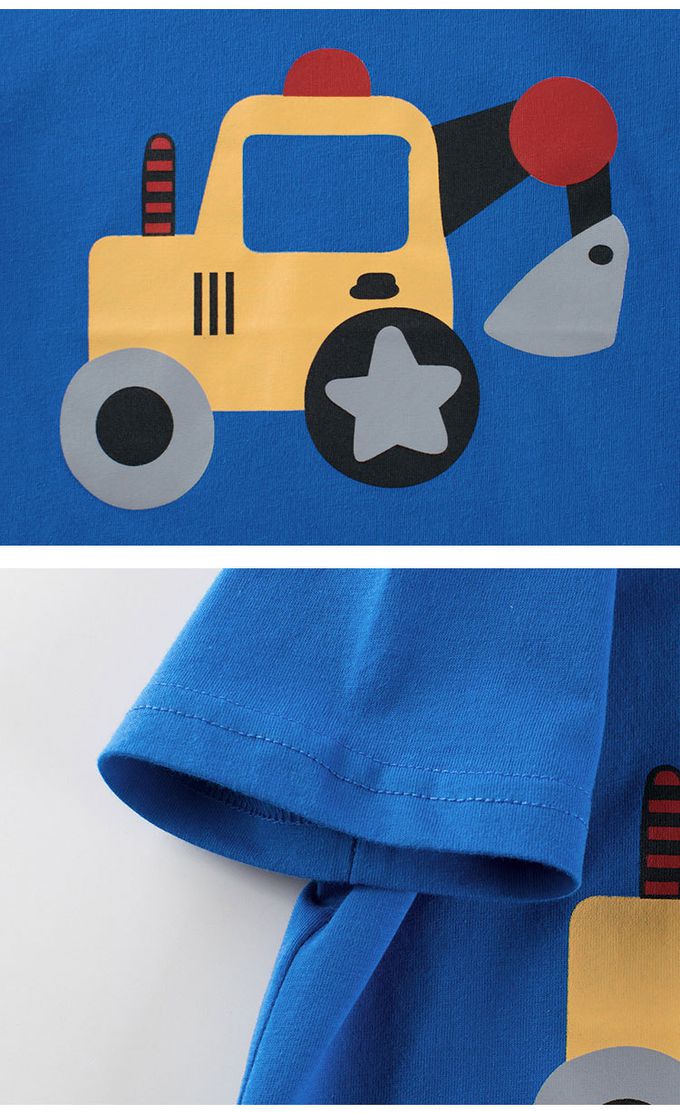 純棉短袖上衣-可愛挖土機-藍色