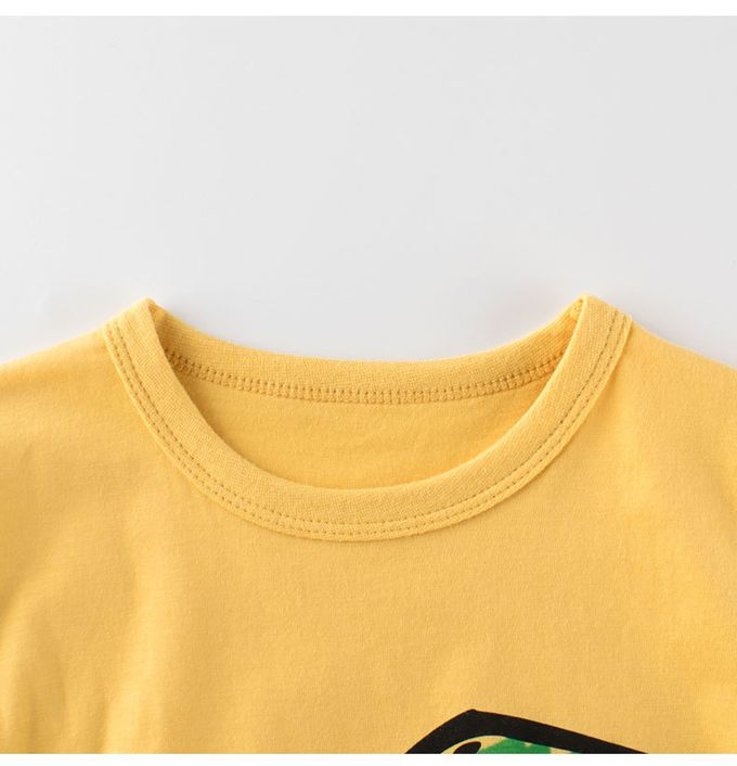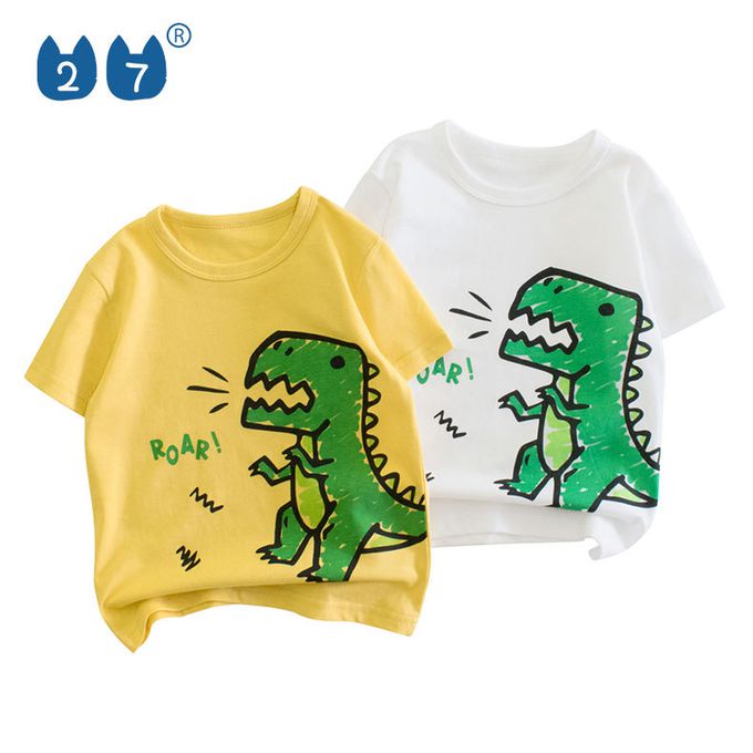 27KIDS - 純棉短袖上衣-長鼻子大象-卡其色
