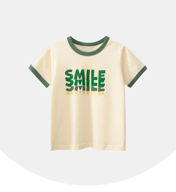 27KIDS - 純棉短袖上衣-長鼻子大象-卡其色