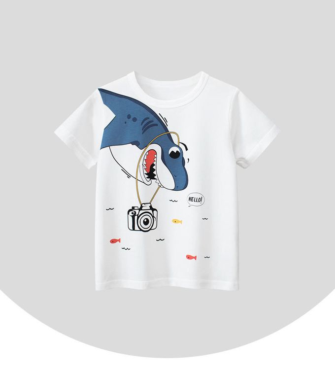 純棉短袖上衣-鯊魚拍照-米白