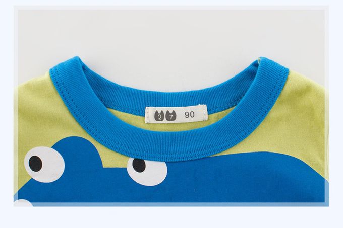 27KIDS - 純棉短袖上衣-藍色笑笑獅-灰綠色