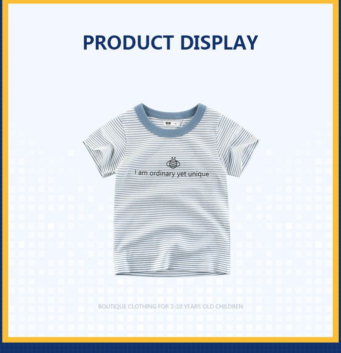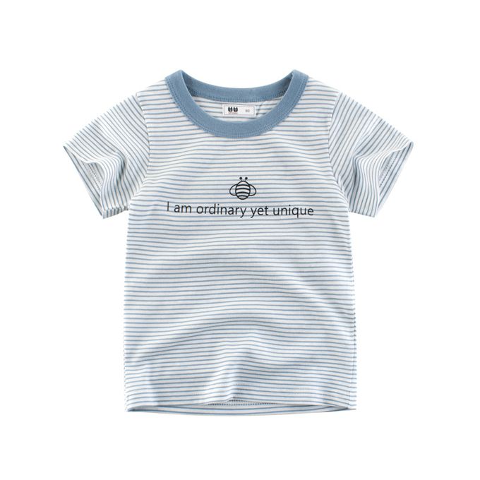 純棉短袖上衣-小蜜蜂-藍色條紋