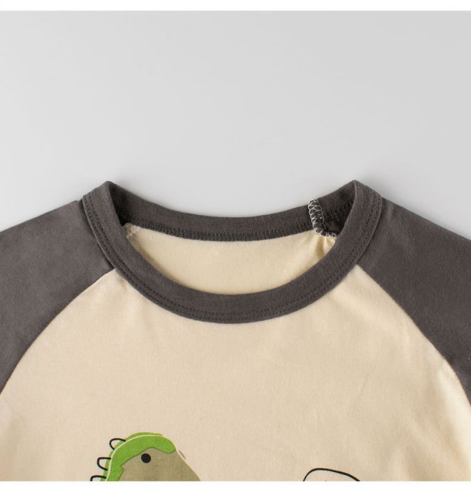 純棉短袖上衣-獅子與恐龍-米杏/深灰