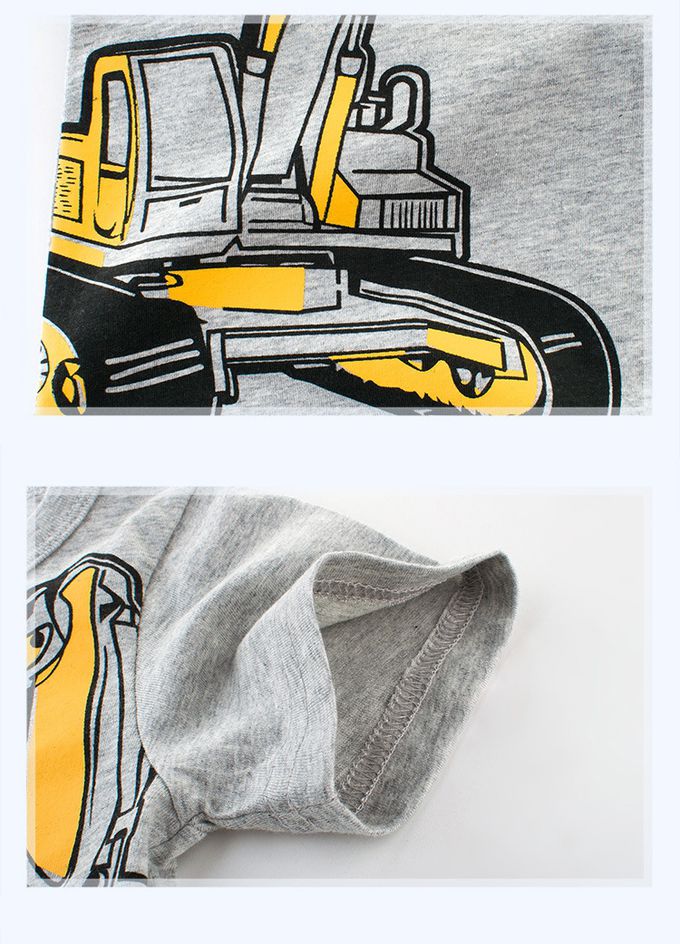 純棉短袖上衣-黃色點綴挖土機-灰色