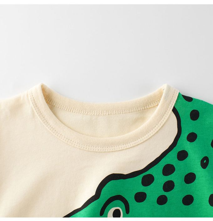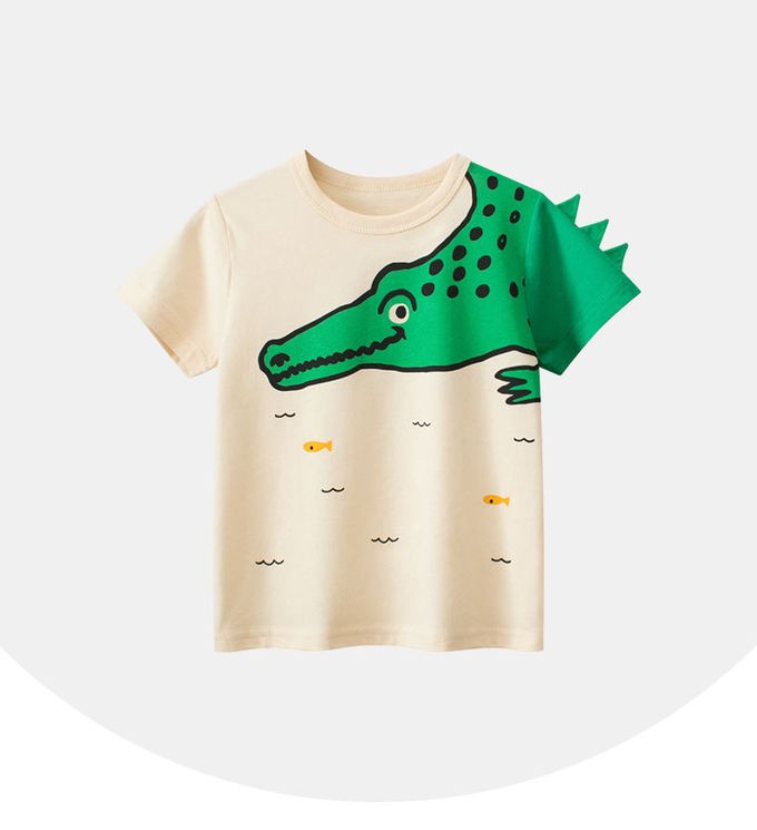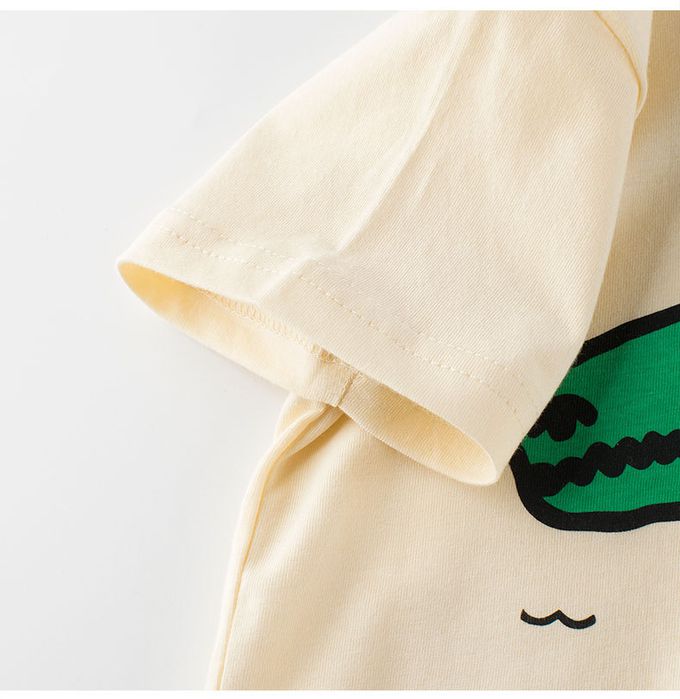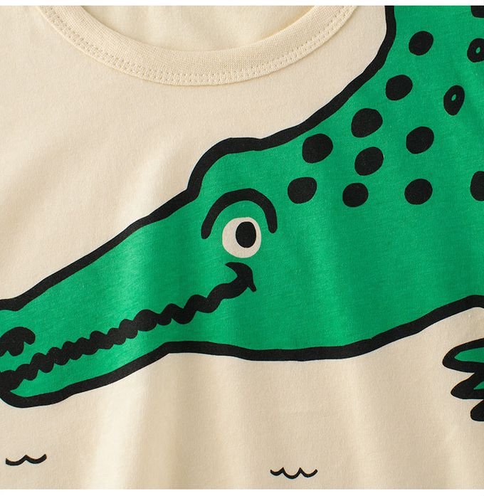 (立體)純棉短袖上衣-綠色鱷魚-米杏
