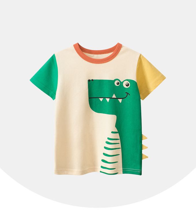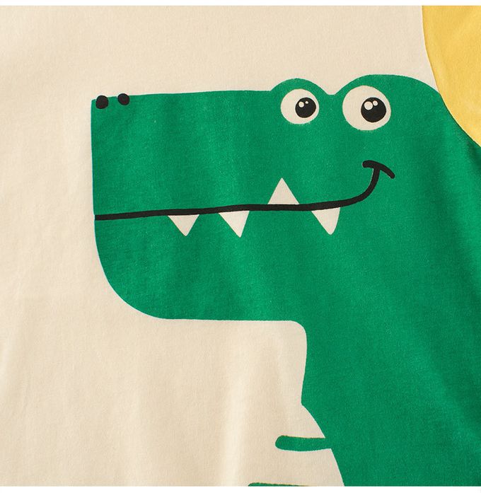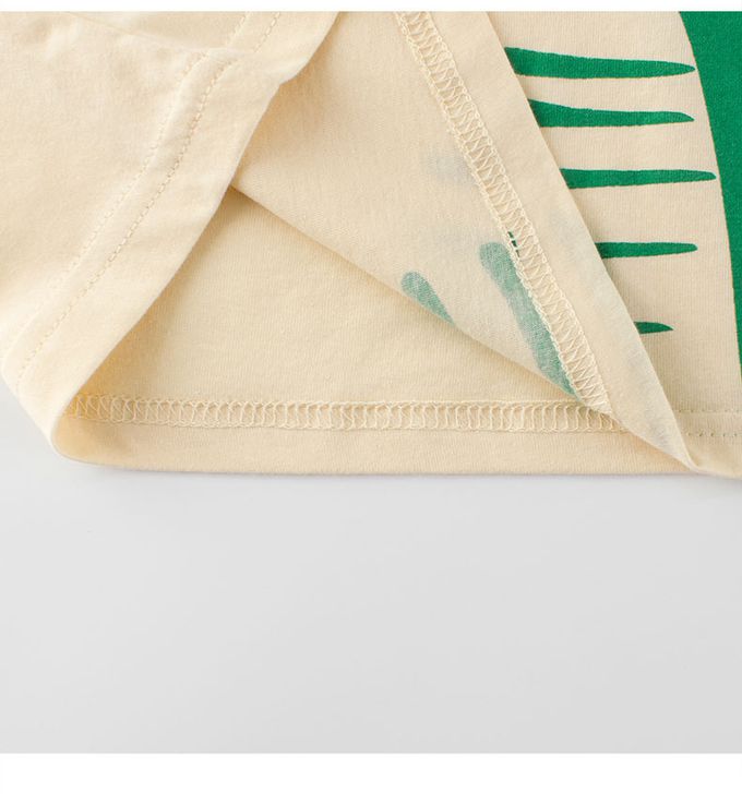 27KIDS - (立體)純棉短袖上衣-3D恐龍咬咬-鵝黃色