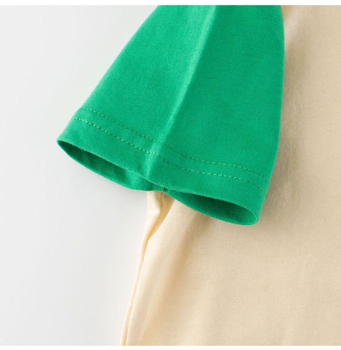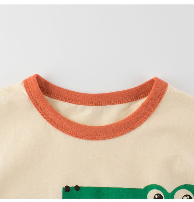 (立體)純棉短袖上衣-拼色鱷魚-米杏