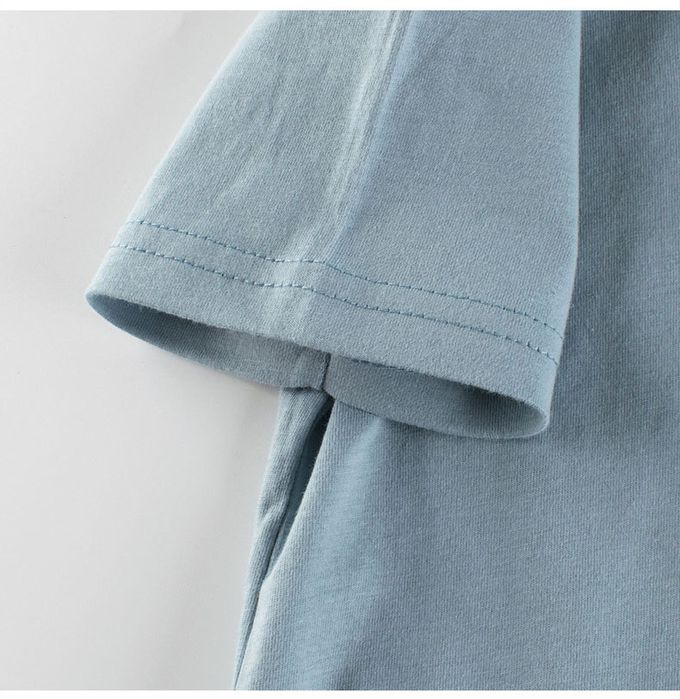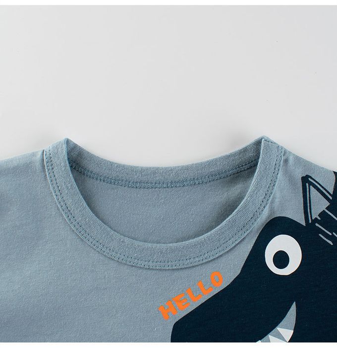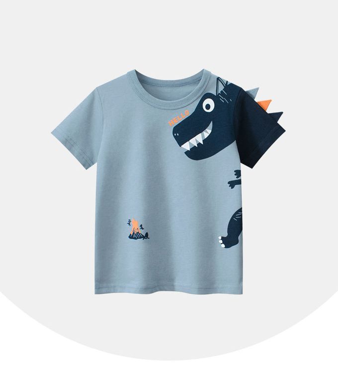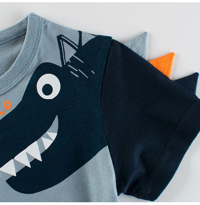 (立體)純棉短袖上衣-HELLO恐龍-藍色