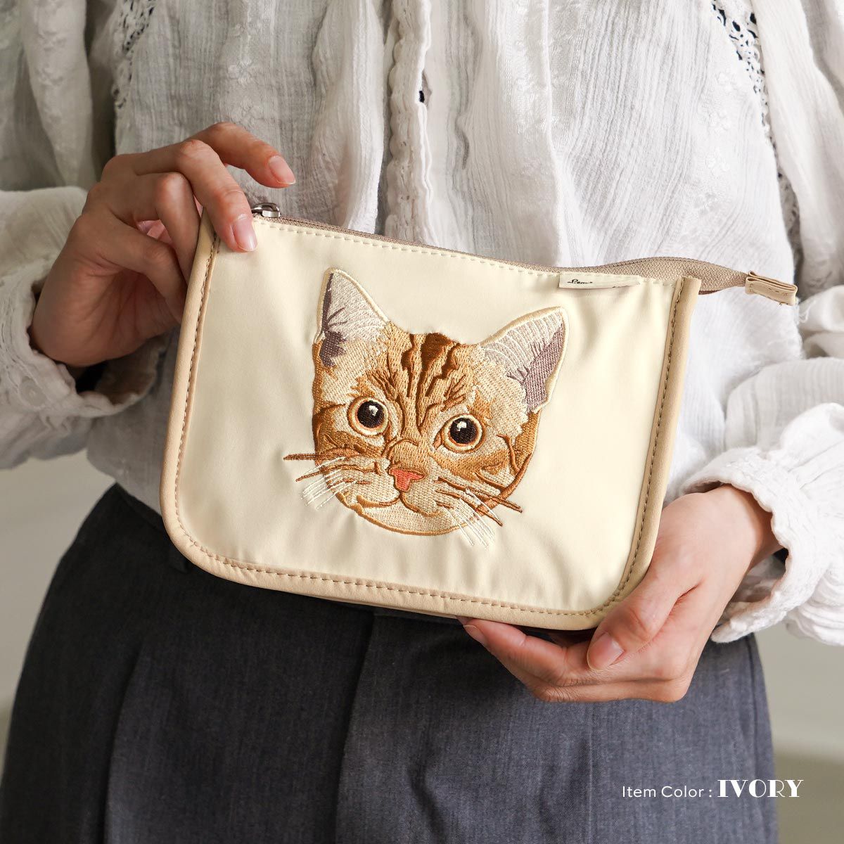 品名:貓咪臉刺繡大容量化妝包