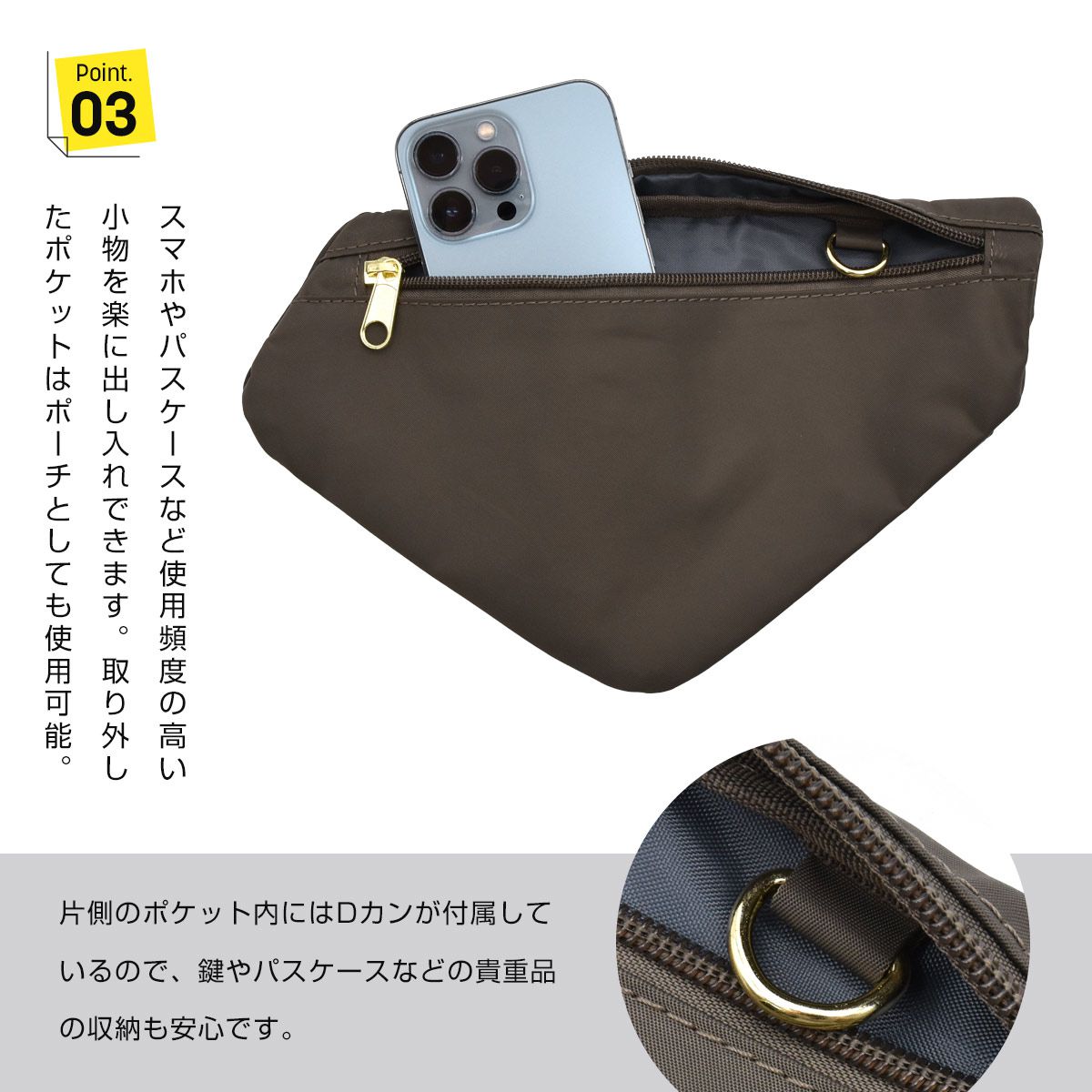 • 附可拆卸式拉鍊袋側袋*1,可隨需求使用