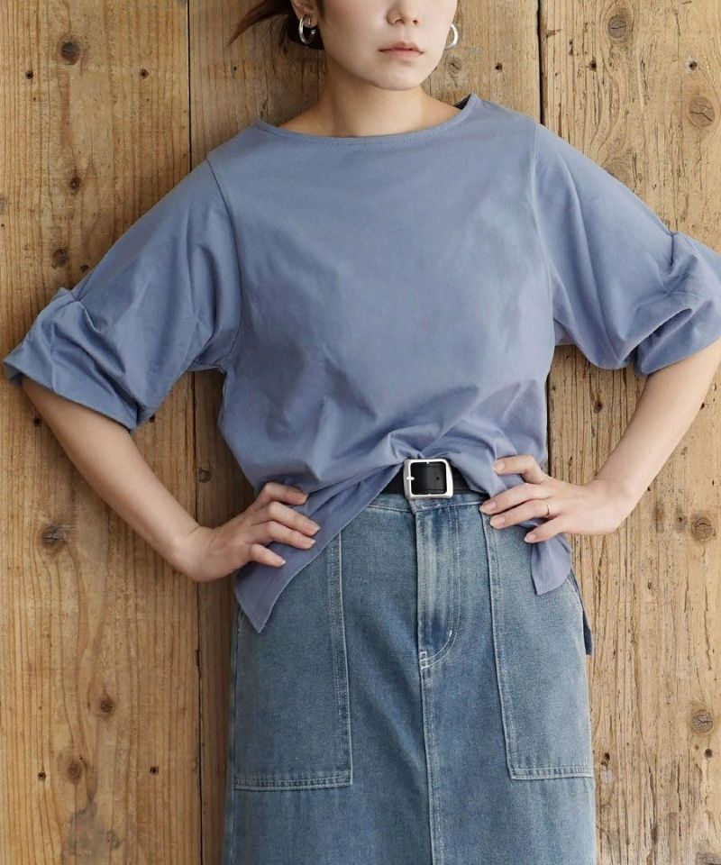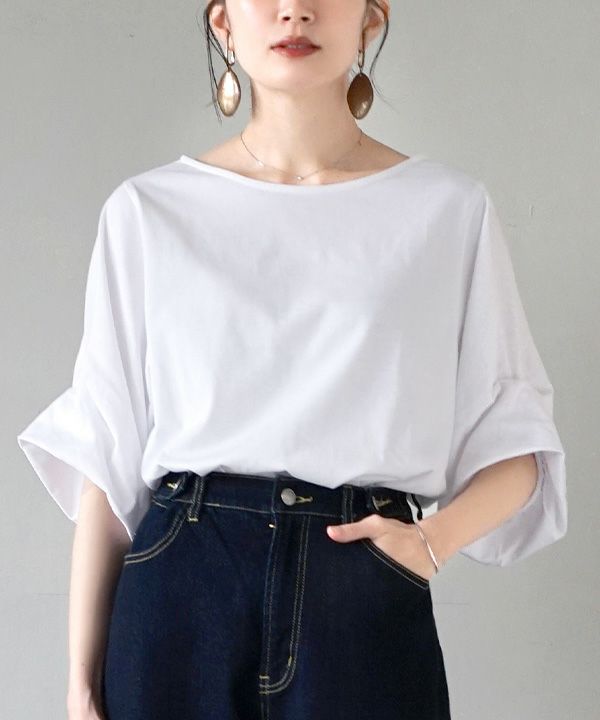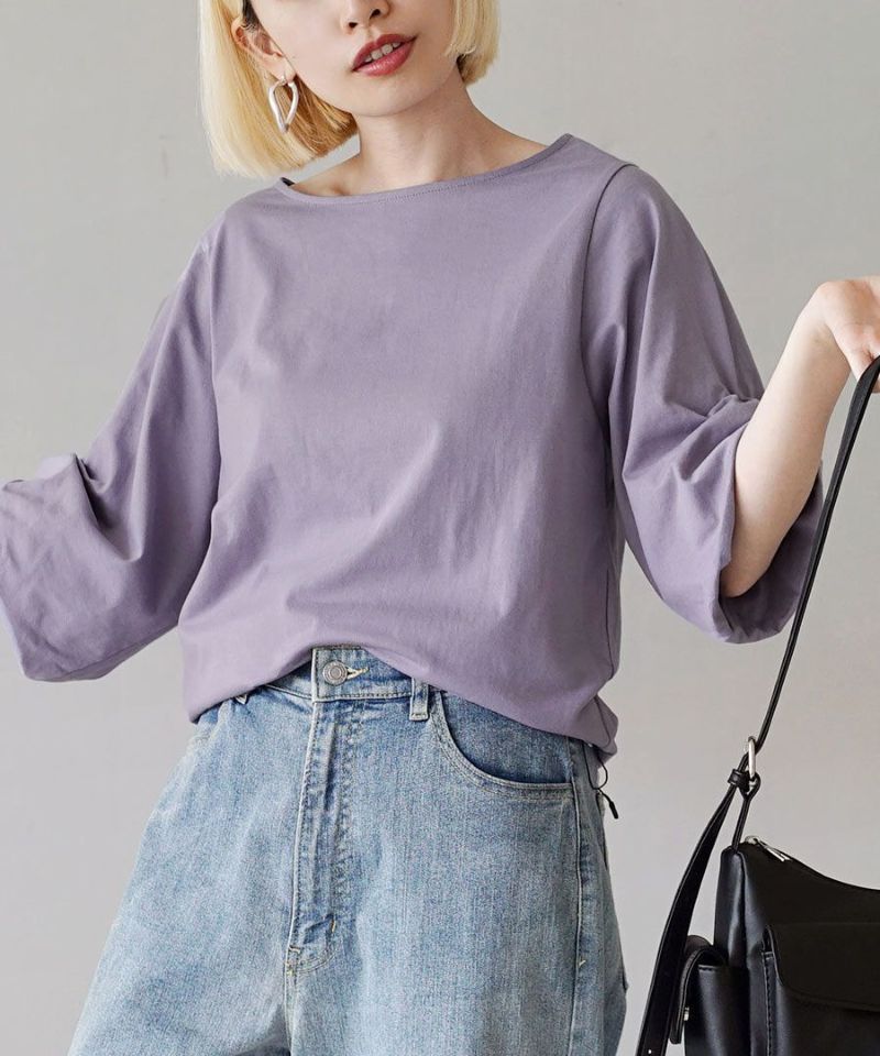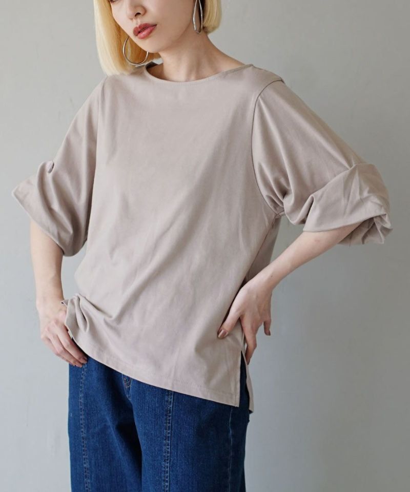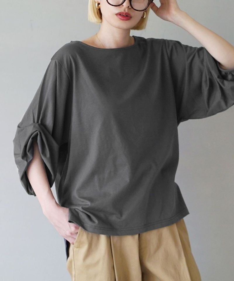 • 品名:天竺棉混顯瘦抓皺五分袖上衣