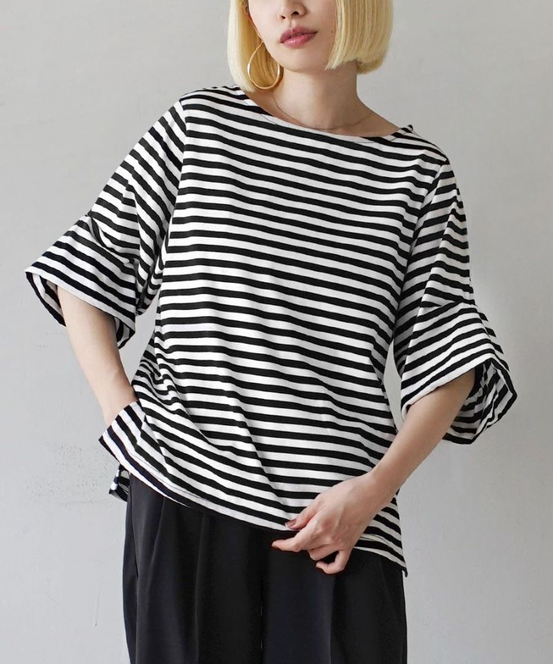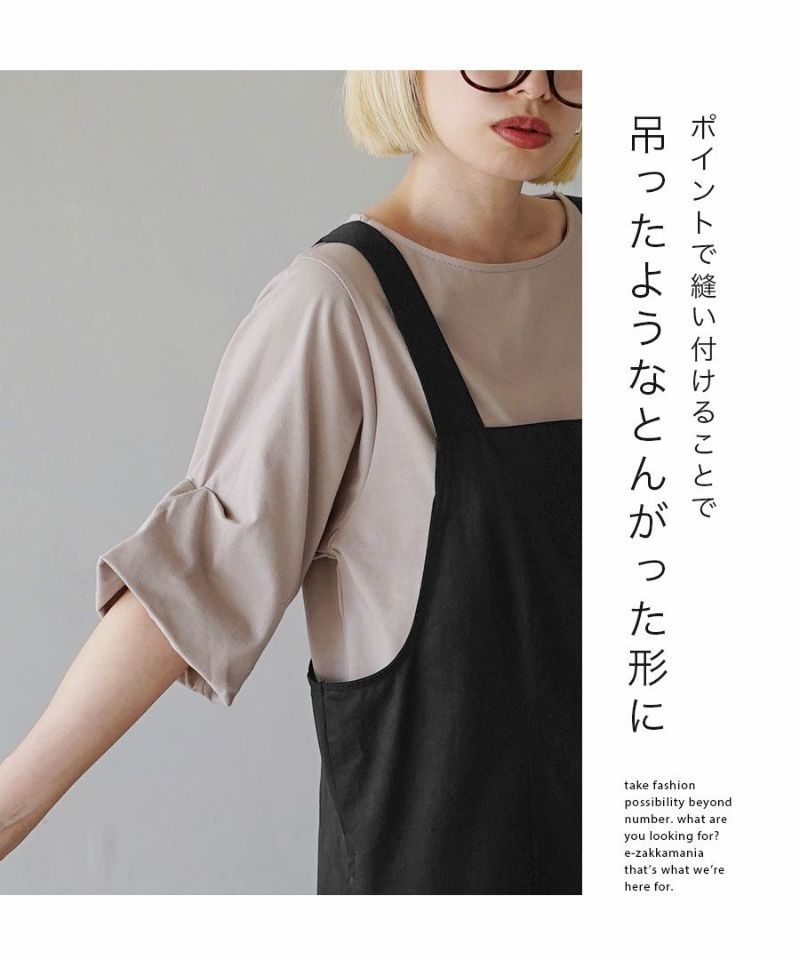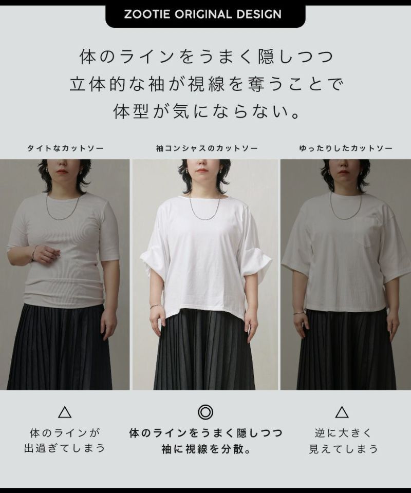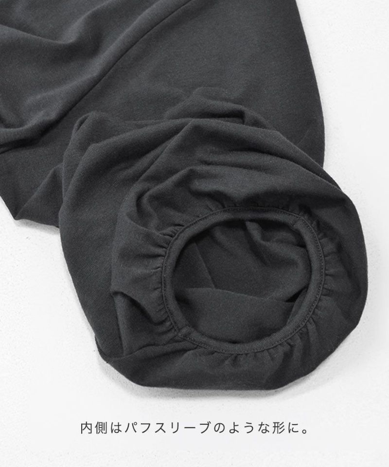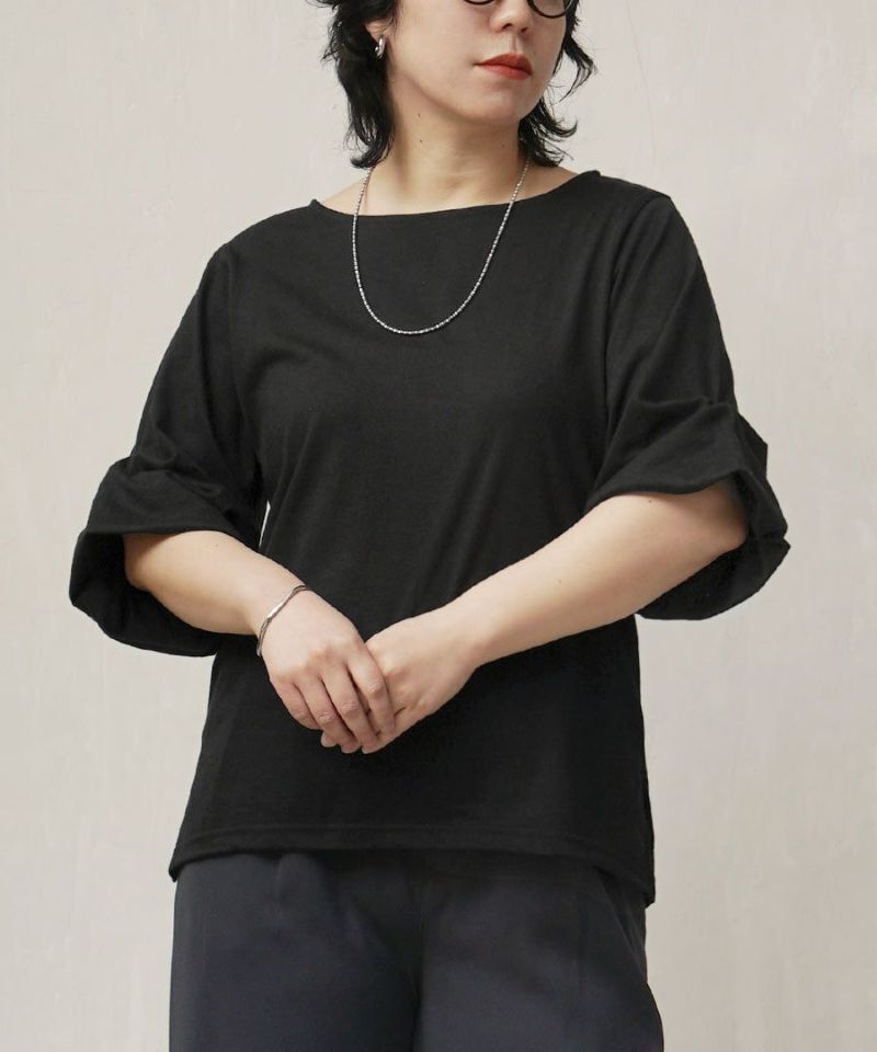 日本 zootie - 天竺棉混顯瘦抓皺五分袖上衣-圓領-黑
