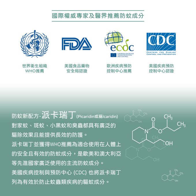 20% Icaridin (埃卡瑞丁),別名Picaridin (派卡瑞丁/避卡納叮)