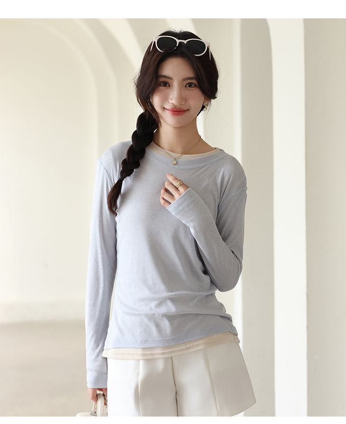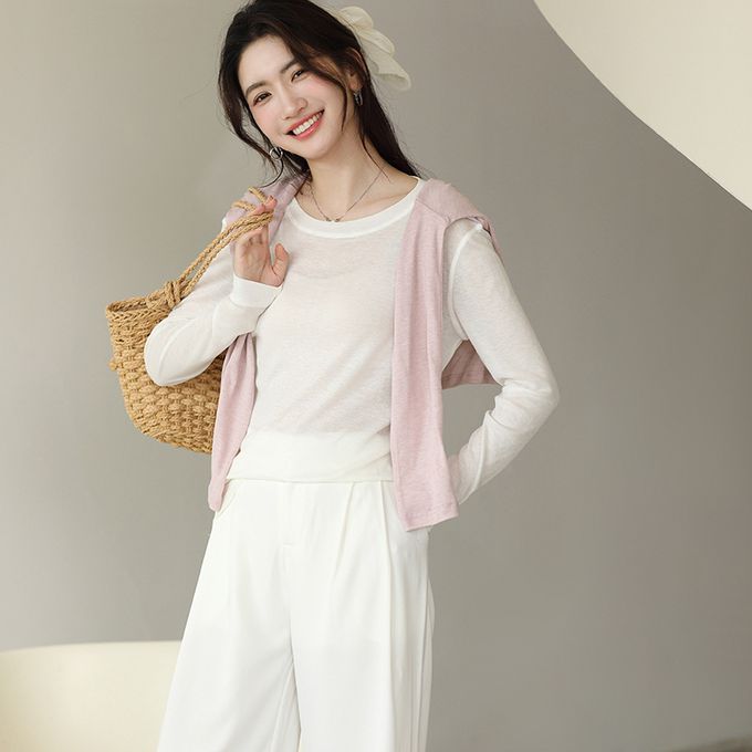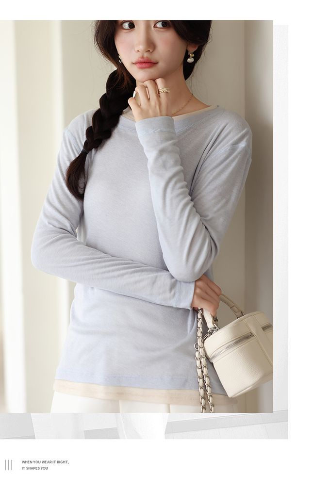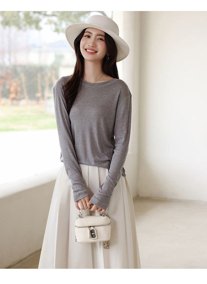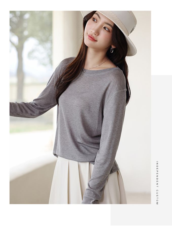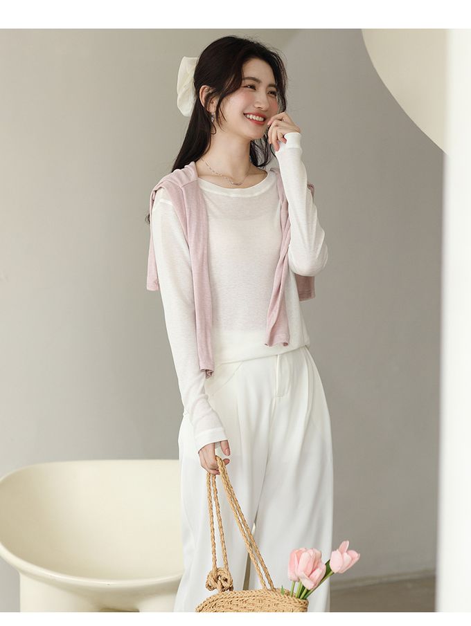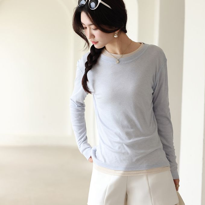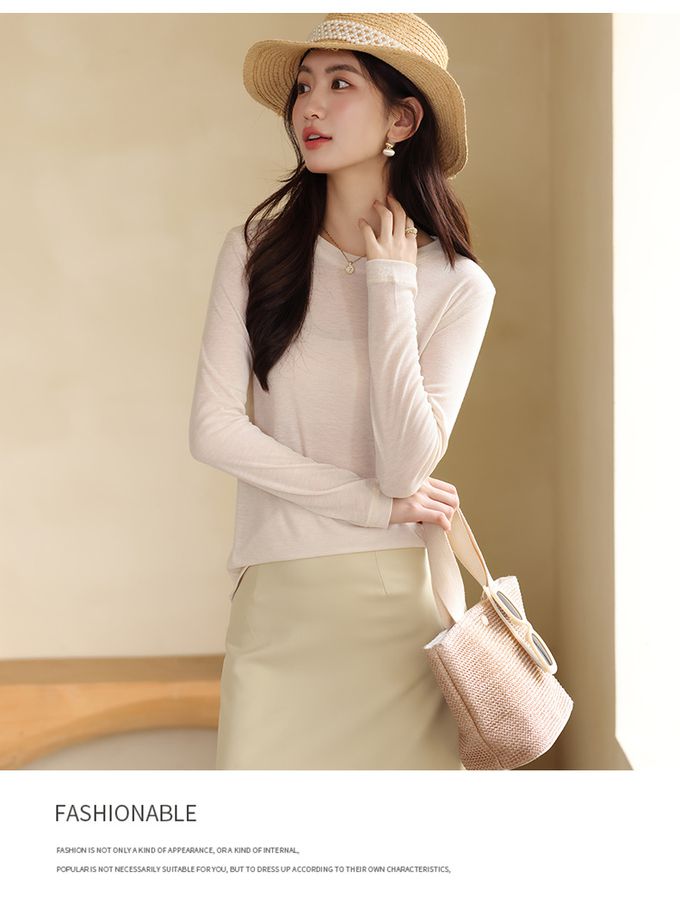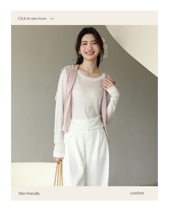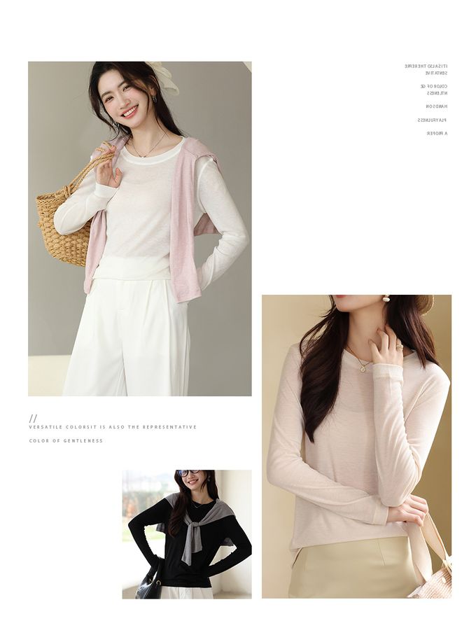 品名:天絲萊塞爾微透膚針織長袖上衣