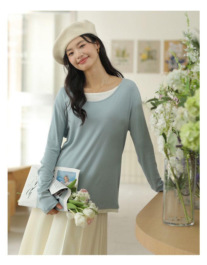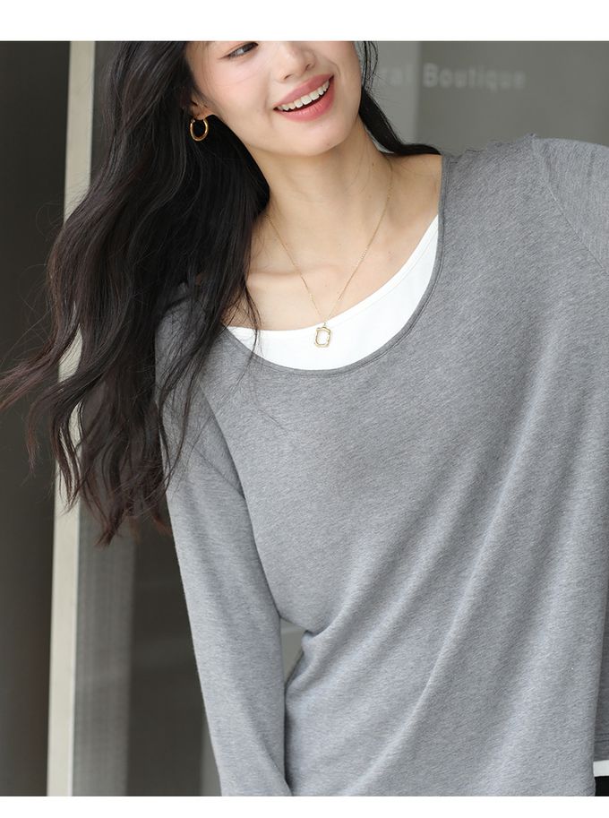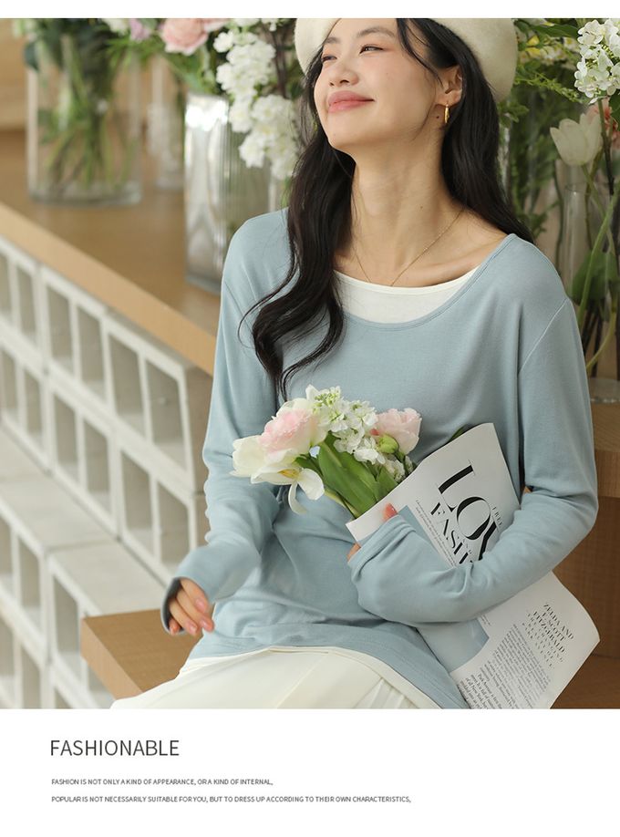 品名:羊絨感假兩件長袖上衣