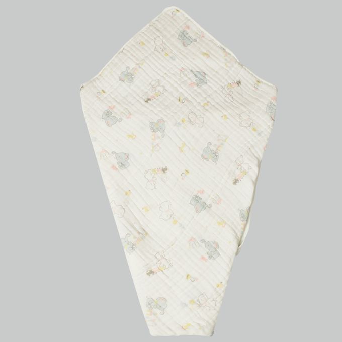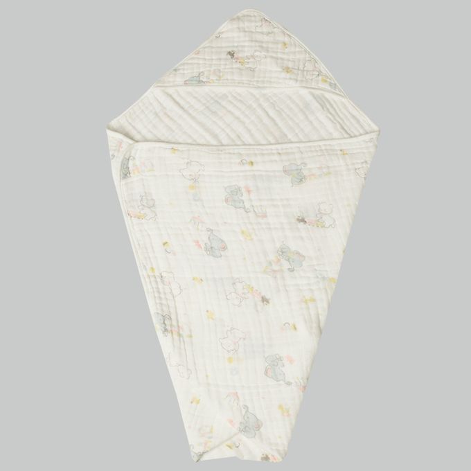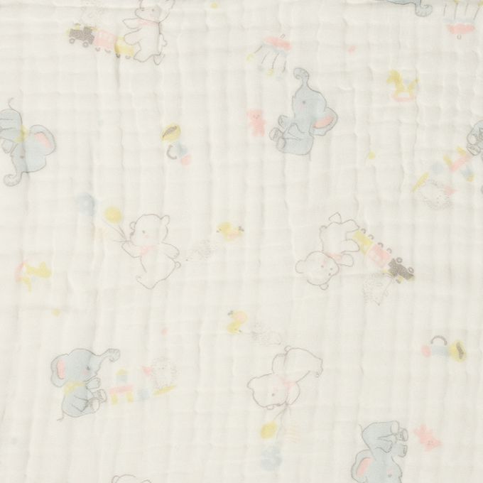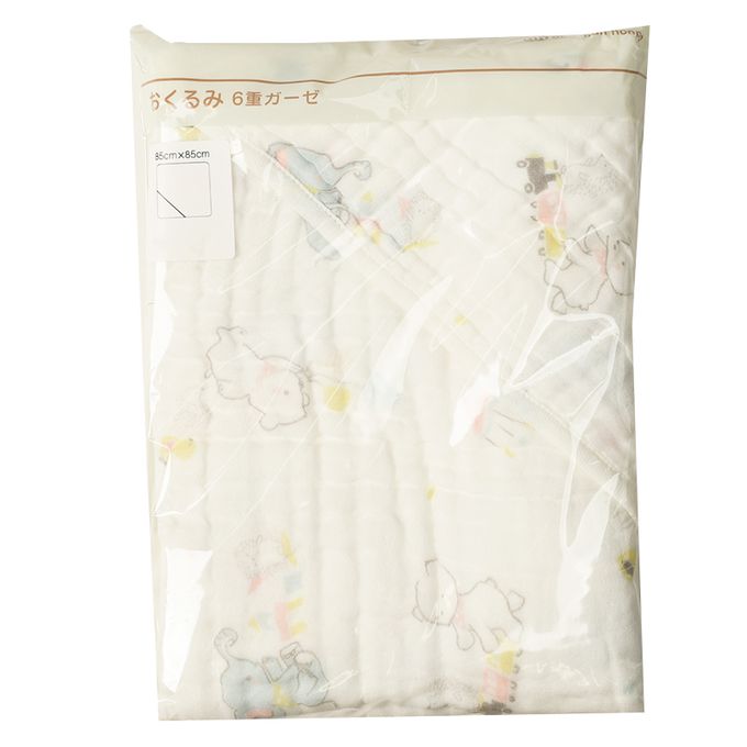 akachan honpo - 6層棉紗包巾-動物-白色 (85cm)