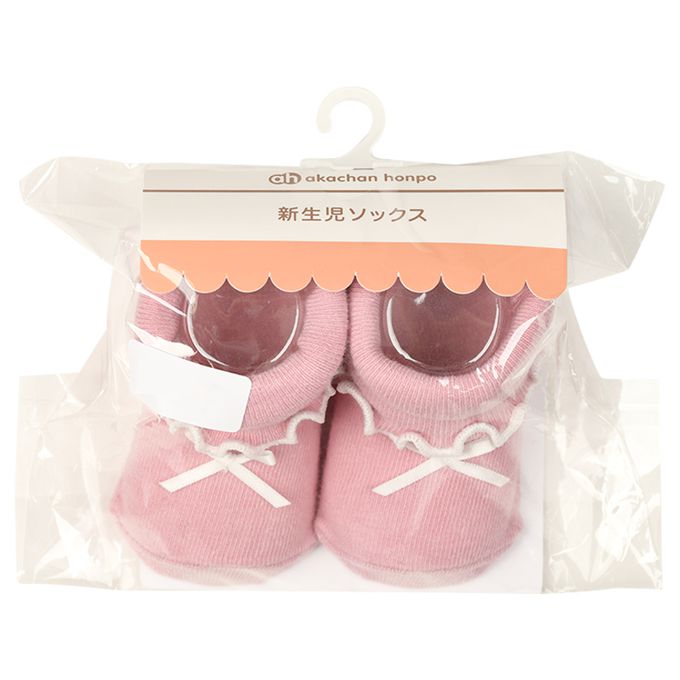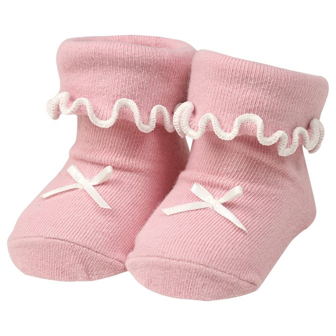 新生兒木耳邊反摺襪-蝴蝶結-粉紅色 (7~9cm)