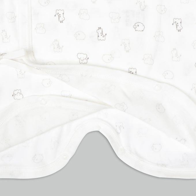 蝴蝶裝與肚衣一起穿,並扣上內側的釦子,即可讓活力充沛的小寶寶即使舞動雙腳,下擺也不易敞開。