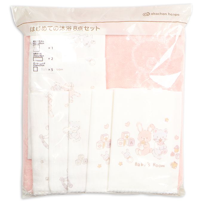 新生兒沐浴8件組-嬰兒房-粉紅色