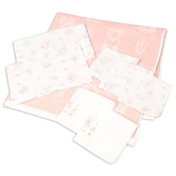 注意事項:●標示內容遵照台灣法規之規定。●熨燙請使用墊布。(內含數量)●浴巾1條●棉紗洗澡巾2條●棉紗手帕5條