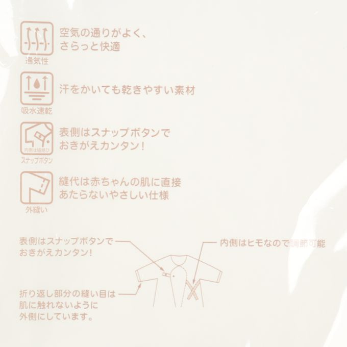 袖口及下擺等的縫線設計在外側,不會直接接觸到小寶寶的肌膚。
