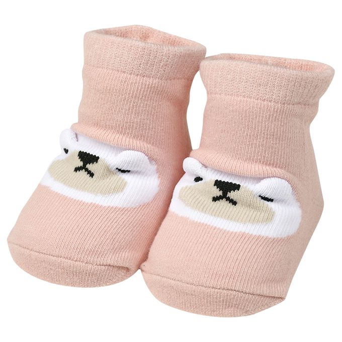 新生兒襪子 立體耳朵-白熊-粉紅色 (7~9cm)