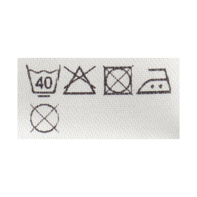 注意事項:●標示內容遵照台灣法規之規定。●請使用不含螢光增白劑的洗劑。●請勿熨燙釦子部分。●熨燙請使用墊布。