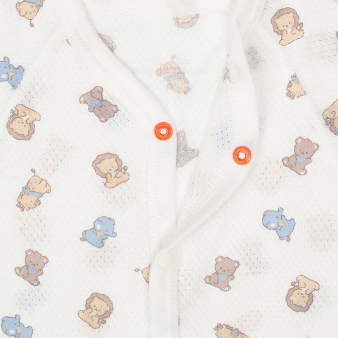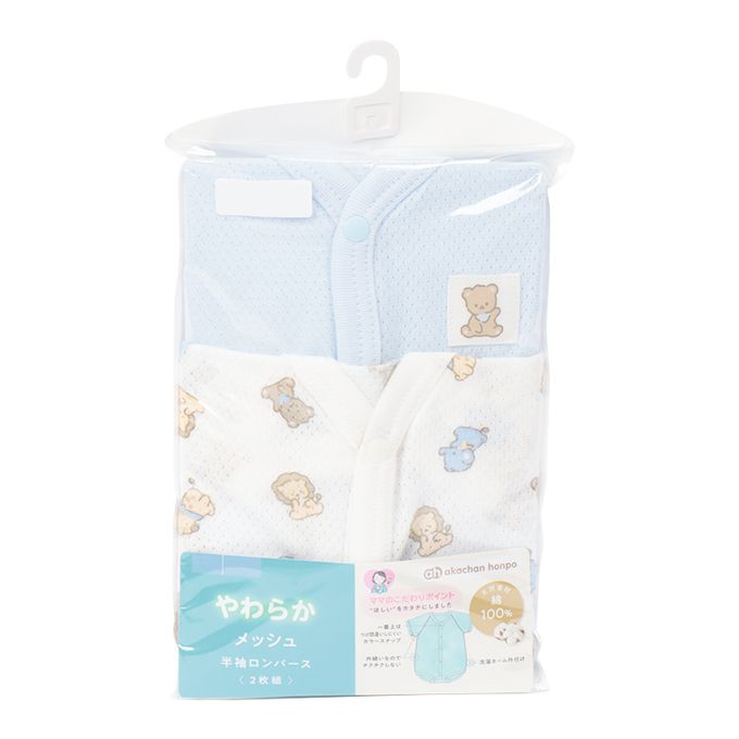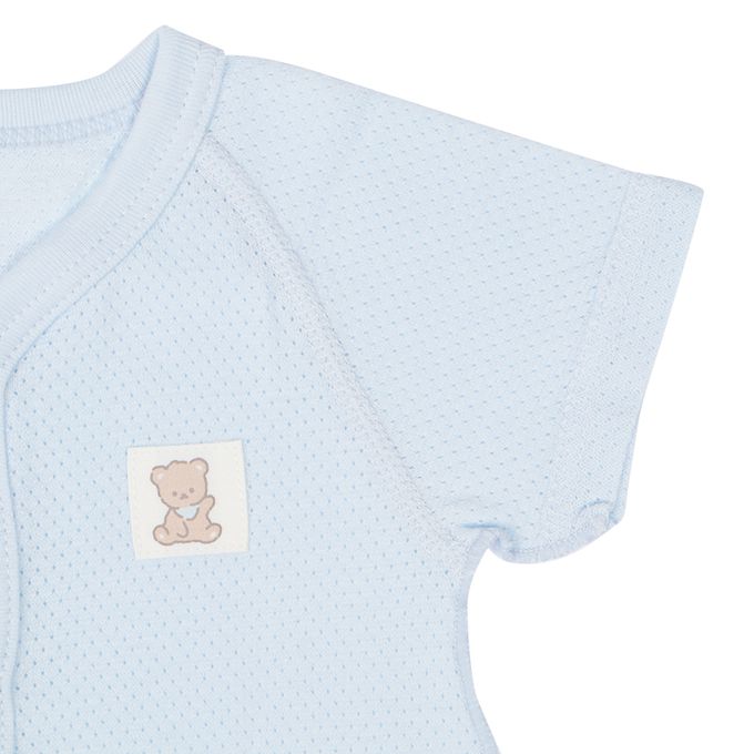 短袖網眼包屁衣2件組-前開式 小熊-淺藍色