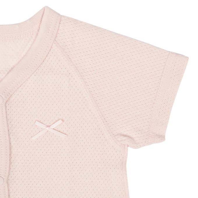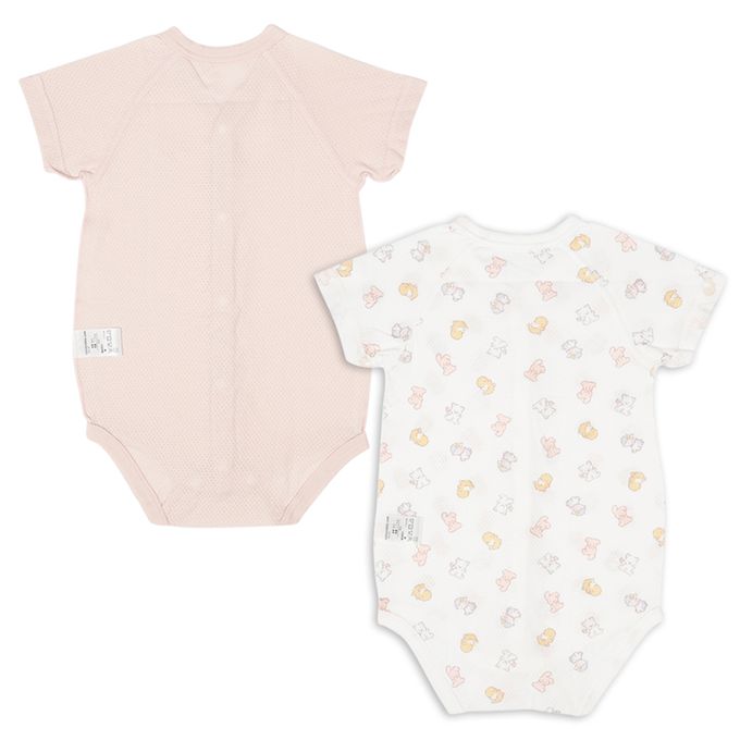 短袖網眼包屁衣2件組-前開式 兔子-粉紅色
