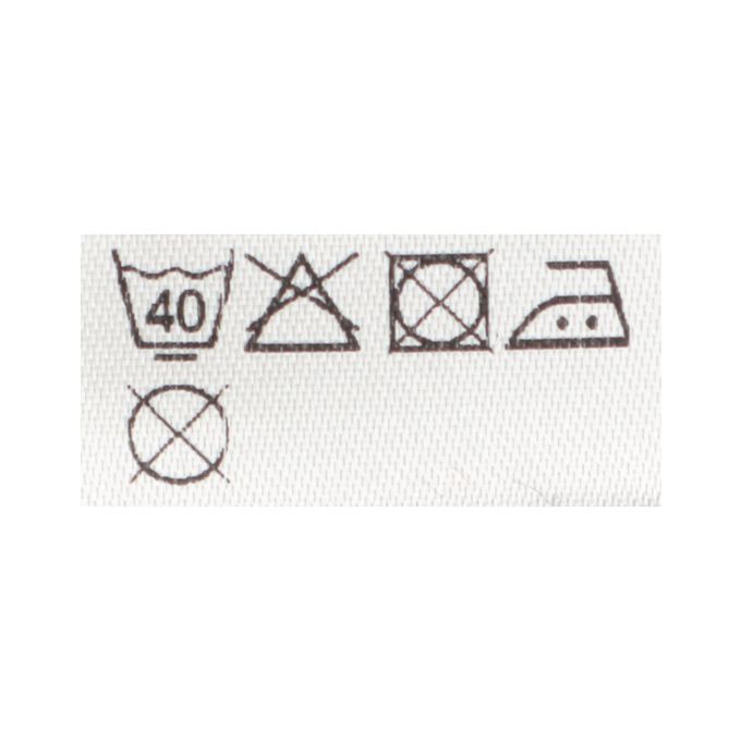 注意事項:●標示內容遵照台灣法規之規定。●請使用不含螢光增白劑的洗劑。●請勿熨燙釦子部分。●熨燙請使用墊布。
