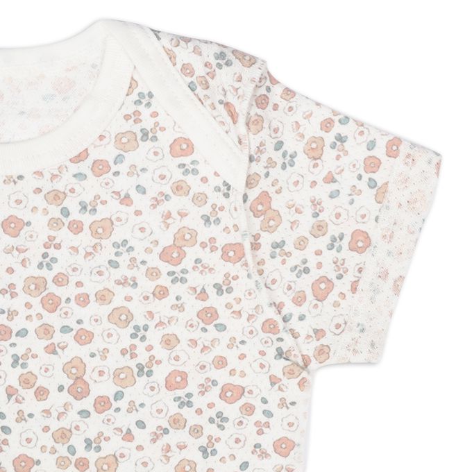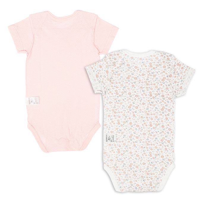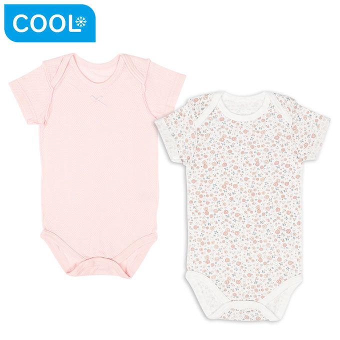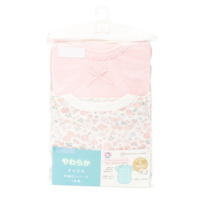 akachan honpo - 短袖網眼包屁衣2件組-套頭式 小花-粉紅色